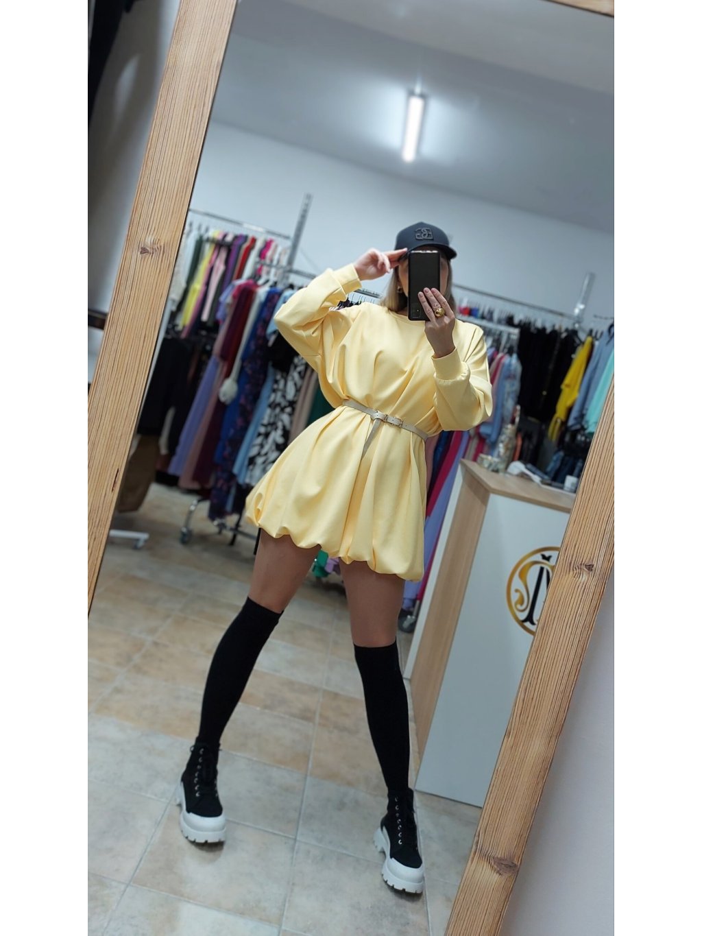 - kratší balónový strih, oválny výstrih a dlhé raglanové rukávy s manžetou pridávajú šatám moderný, ale stále pohodlný vzhľad