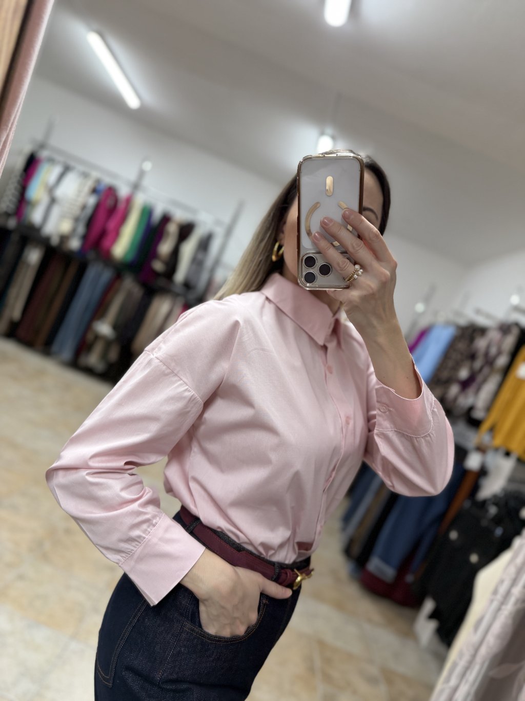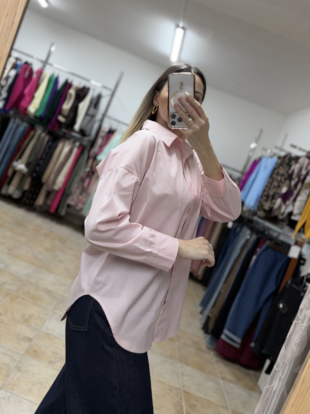 - bavlnená dámska ružová košeľa z 100 % bavlny