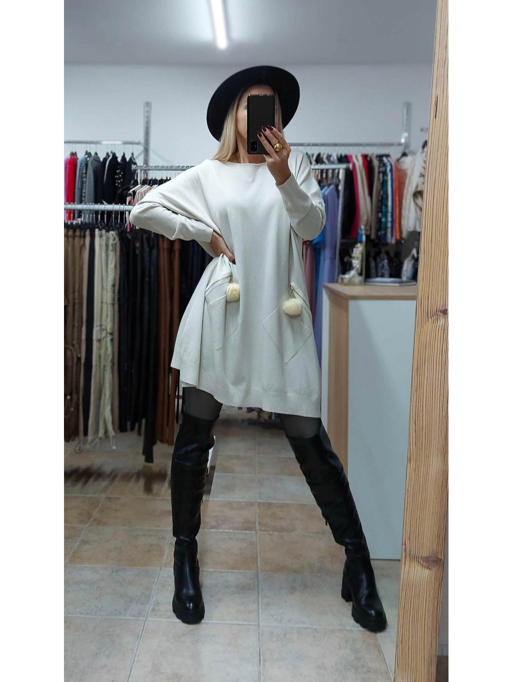 - béžové oversize šaty sú ušité z tenšieho, mäkučkého úpletového materiálu, ktorý je príjemný na dotyk