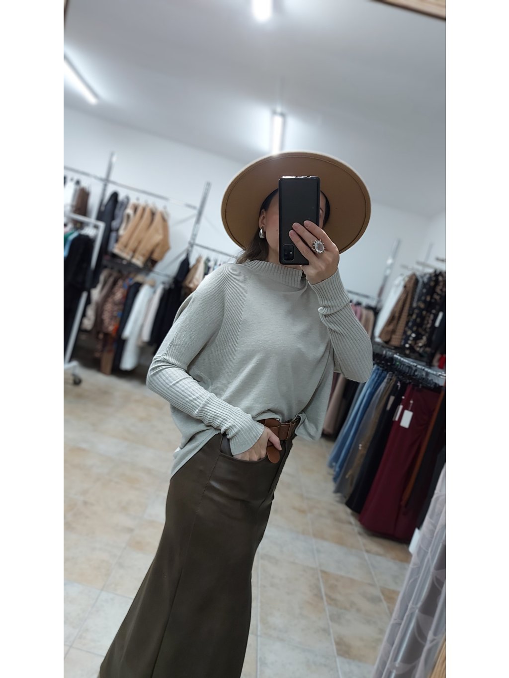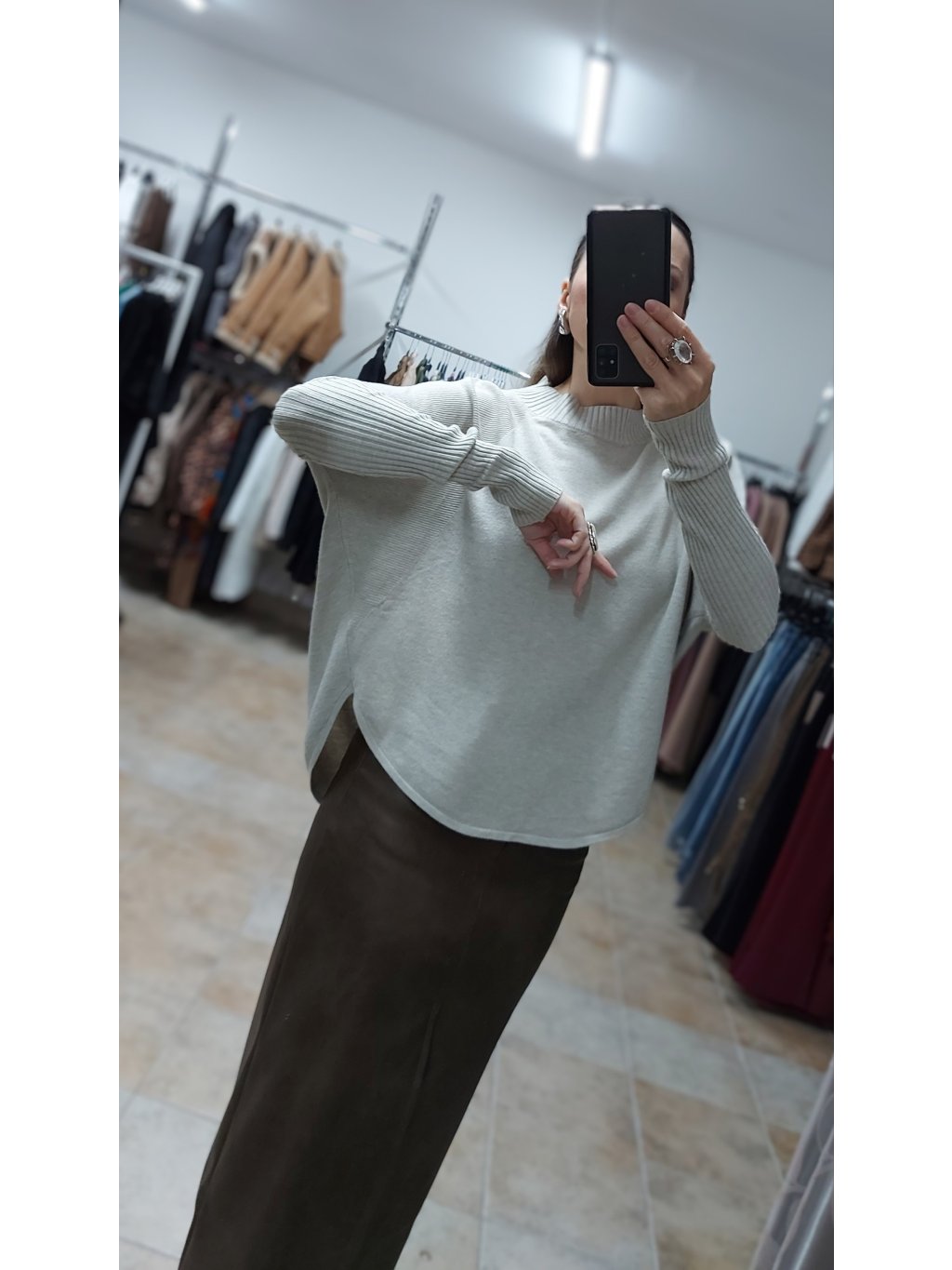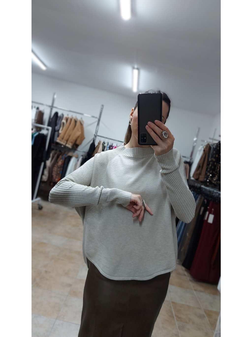 - béžový pulóver sa skvelo kombinuje s rifľami, sukňou či úzkymi nohavicami