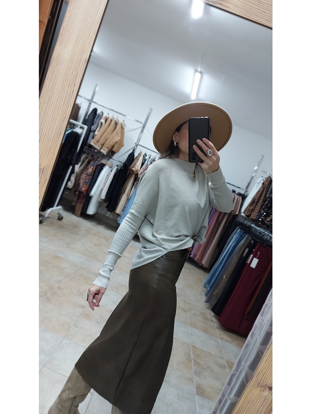 - má asymetrický strih s netopierovými rukávmi, ktoré dodávajú outfitu ležérny a ženský nádych