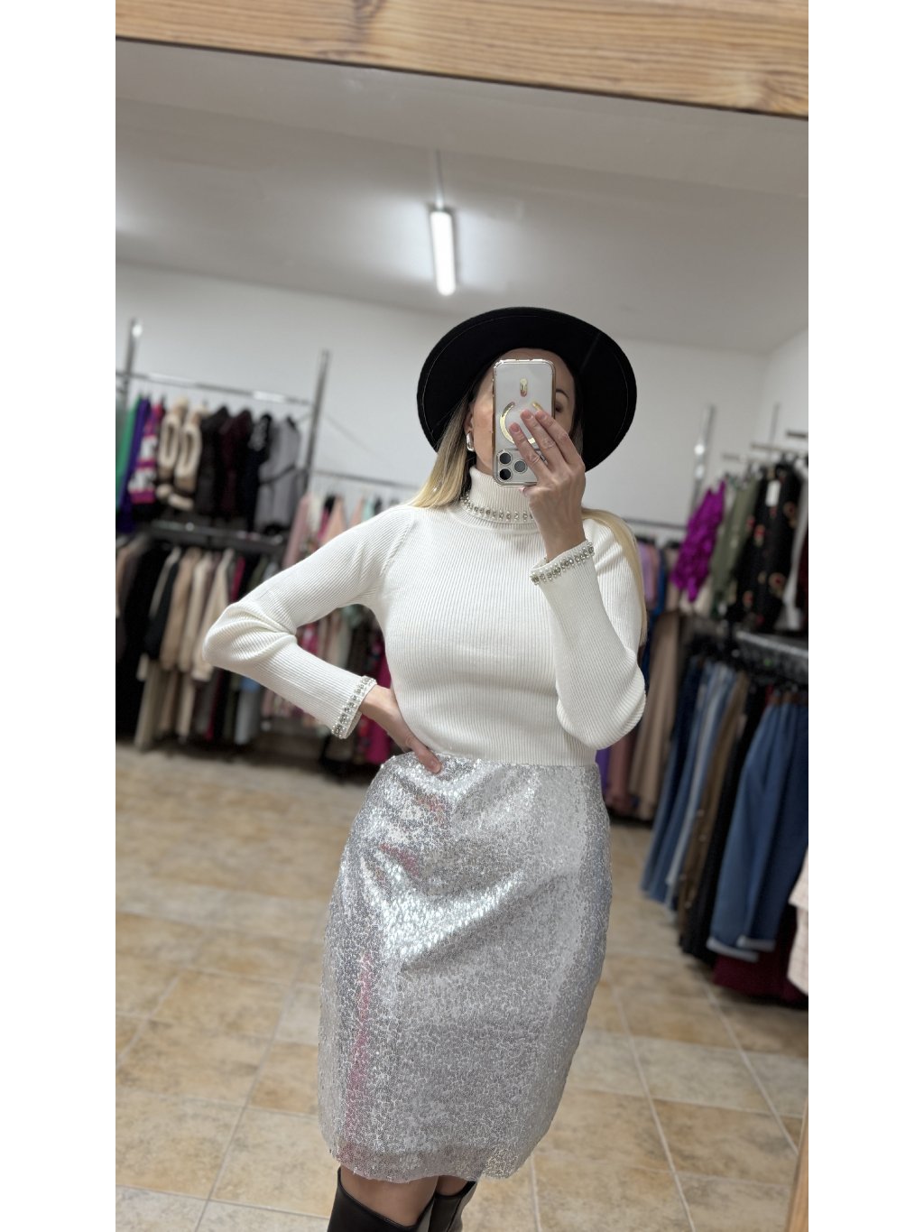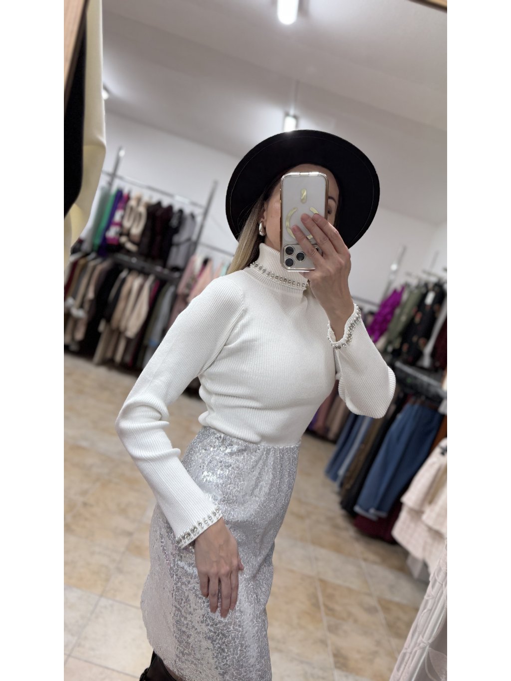 - biely rolák s kryštálikmi je dokonalou kombináciou minimalizmu, ženskosti a decentného luxusu