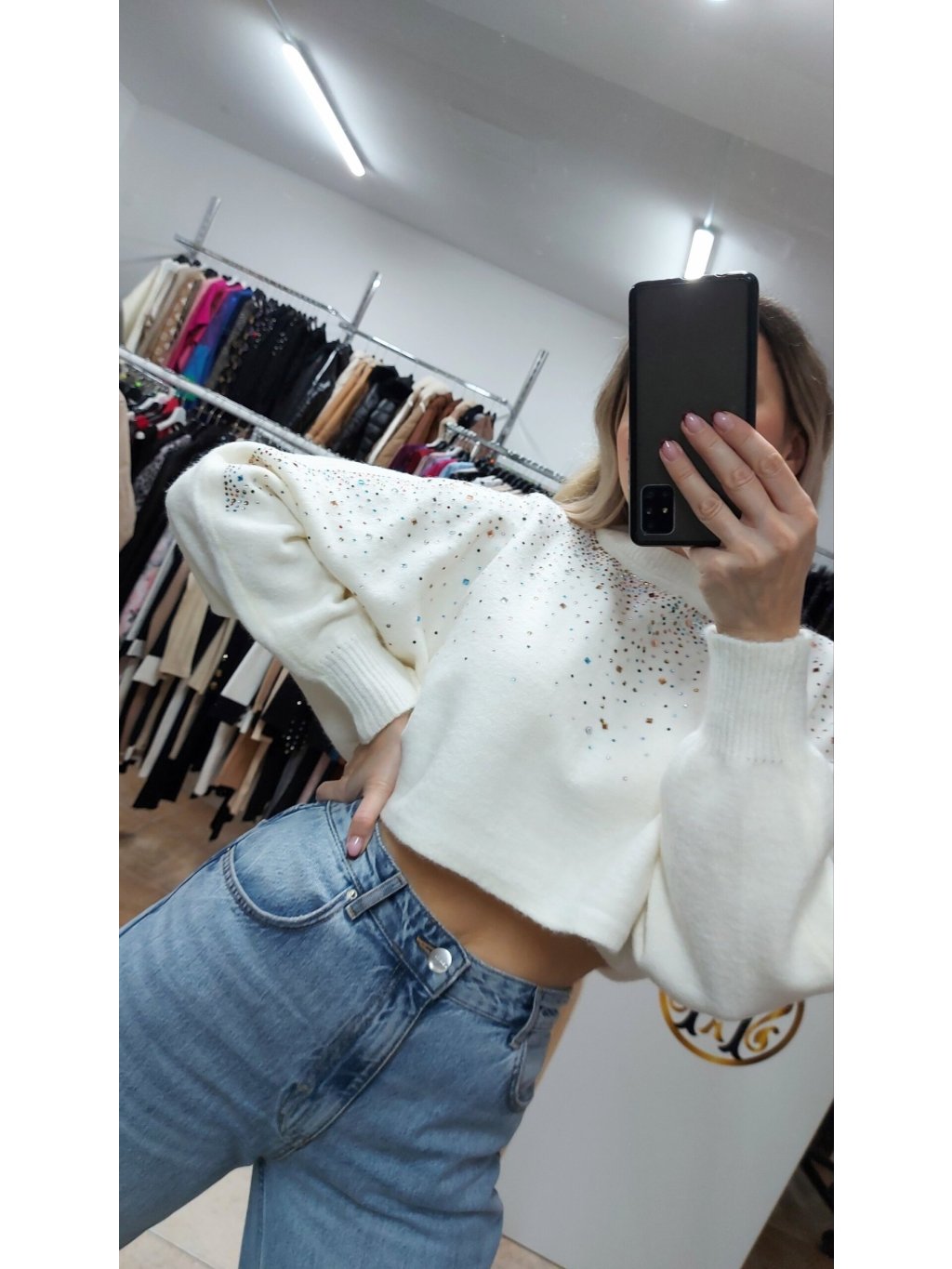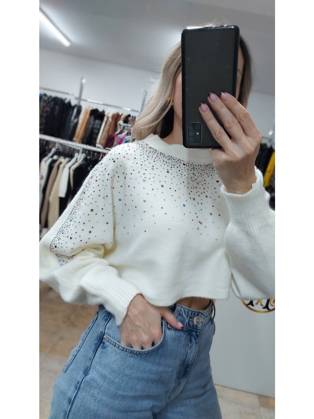 - sveter s trblietkami vďaka bielej farbe pôsobí sviežo a čisto – je to kúsok, ktorý využiješ na bežné dni aj špeciálne príležitosti