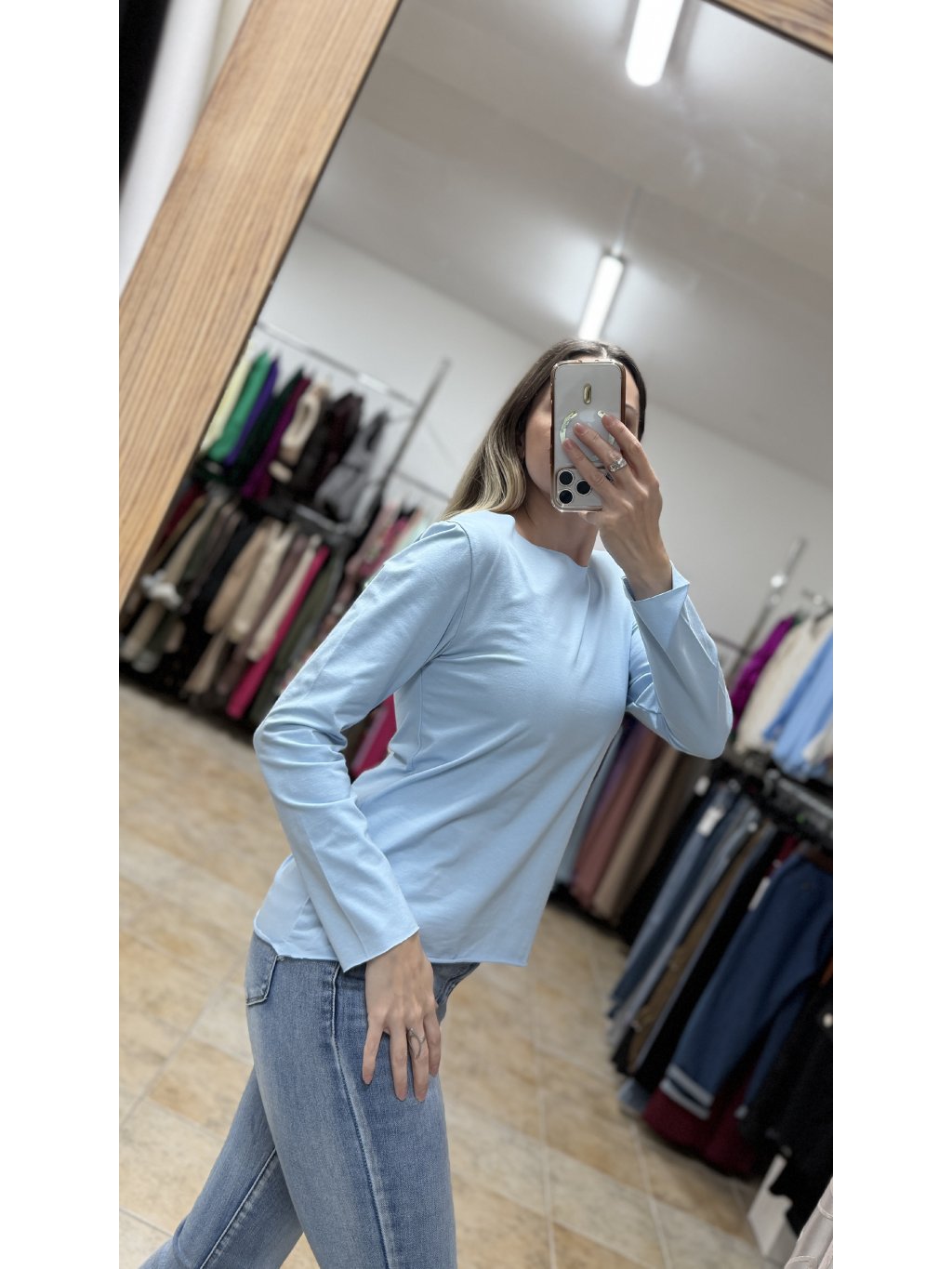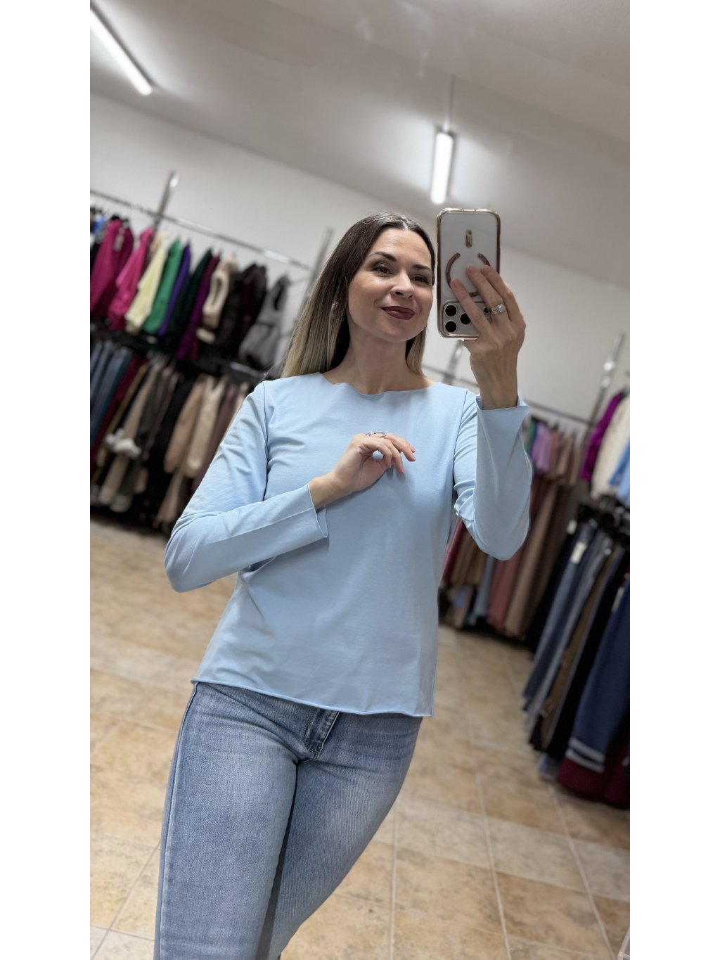 - bledomodré bavlnené tričko s dlhým rukávom v jemnej bledomodrej farbe je nadčasový a veľmi univerzálny kúsok