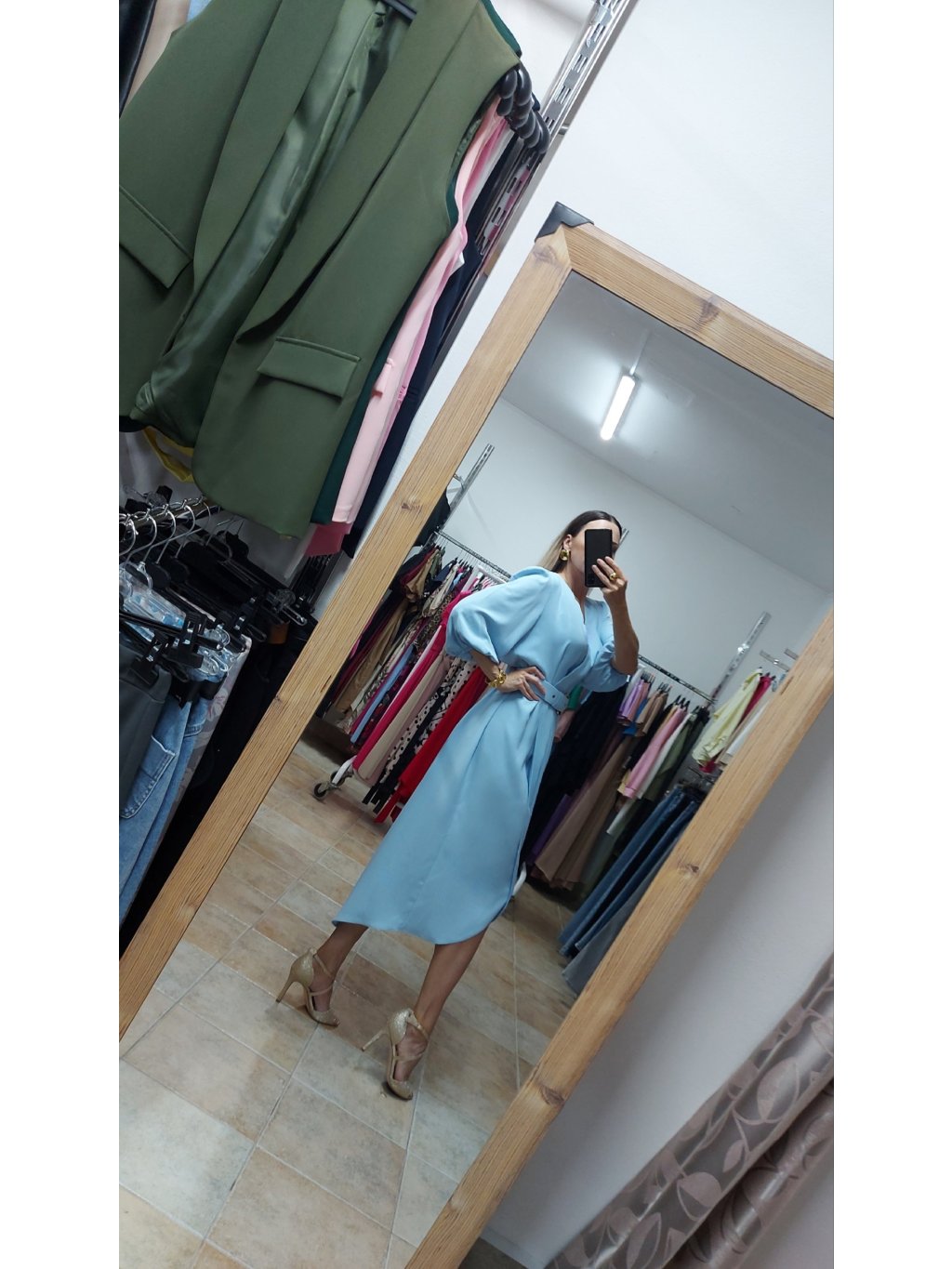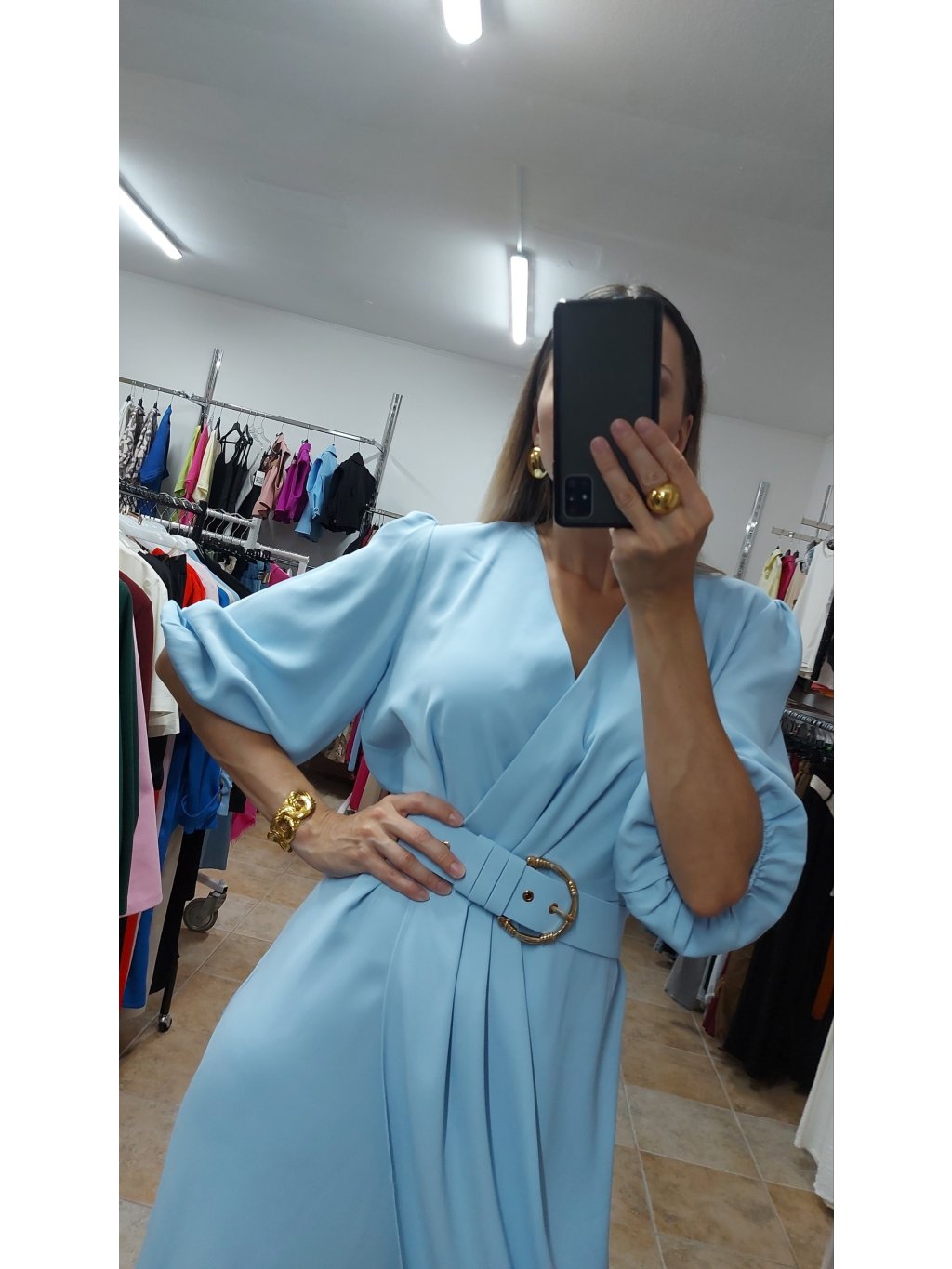 - tieto bledomodré spoločenské šaty skvelo doplníš nude alebo striebornými doplnkami, minimalistickými šperkami a jemnými lodičkami či sandálikmi na opätku
