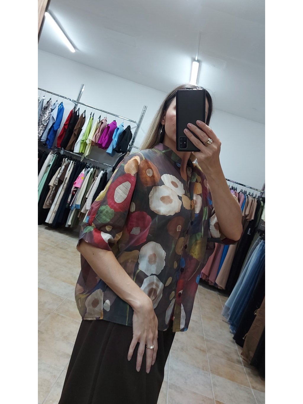 - táto blúzka pre moletky sa zapína vpredu na klasické gombíky, má výstrih do V s krátkym stojačikom