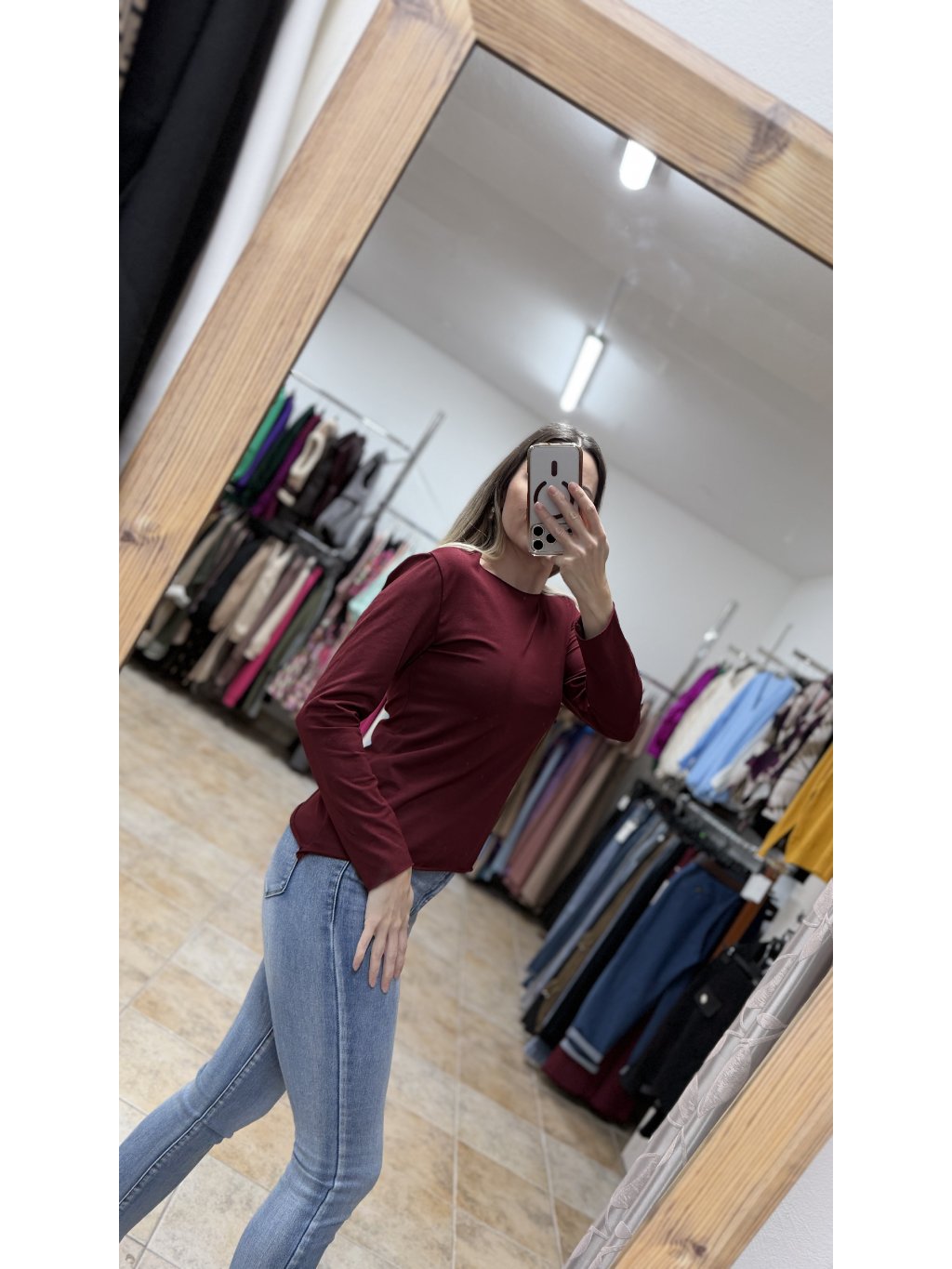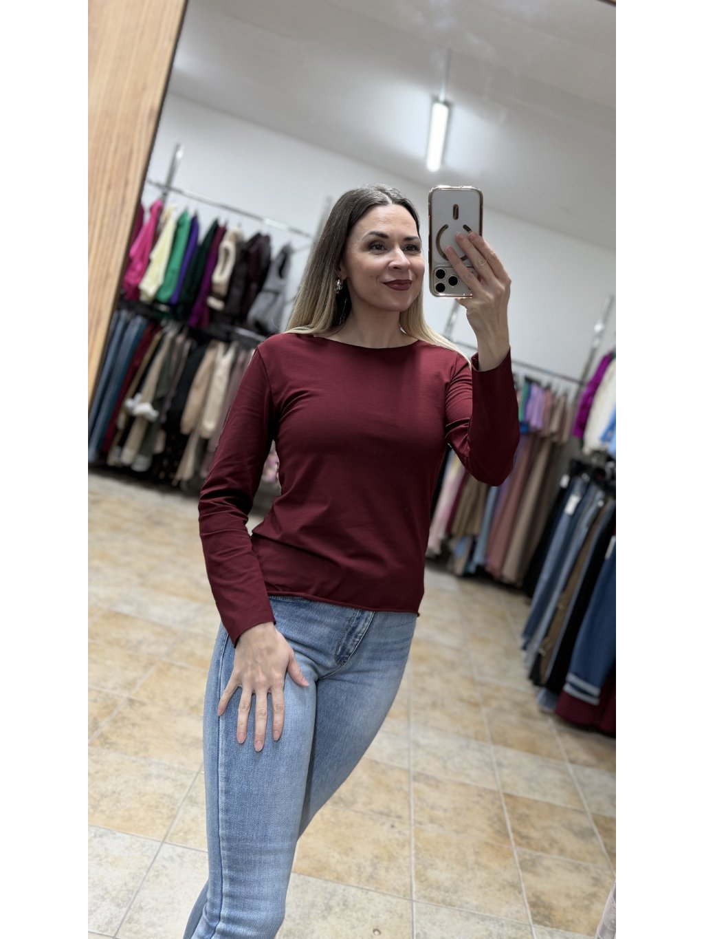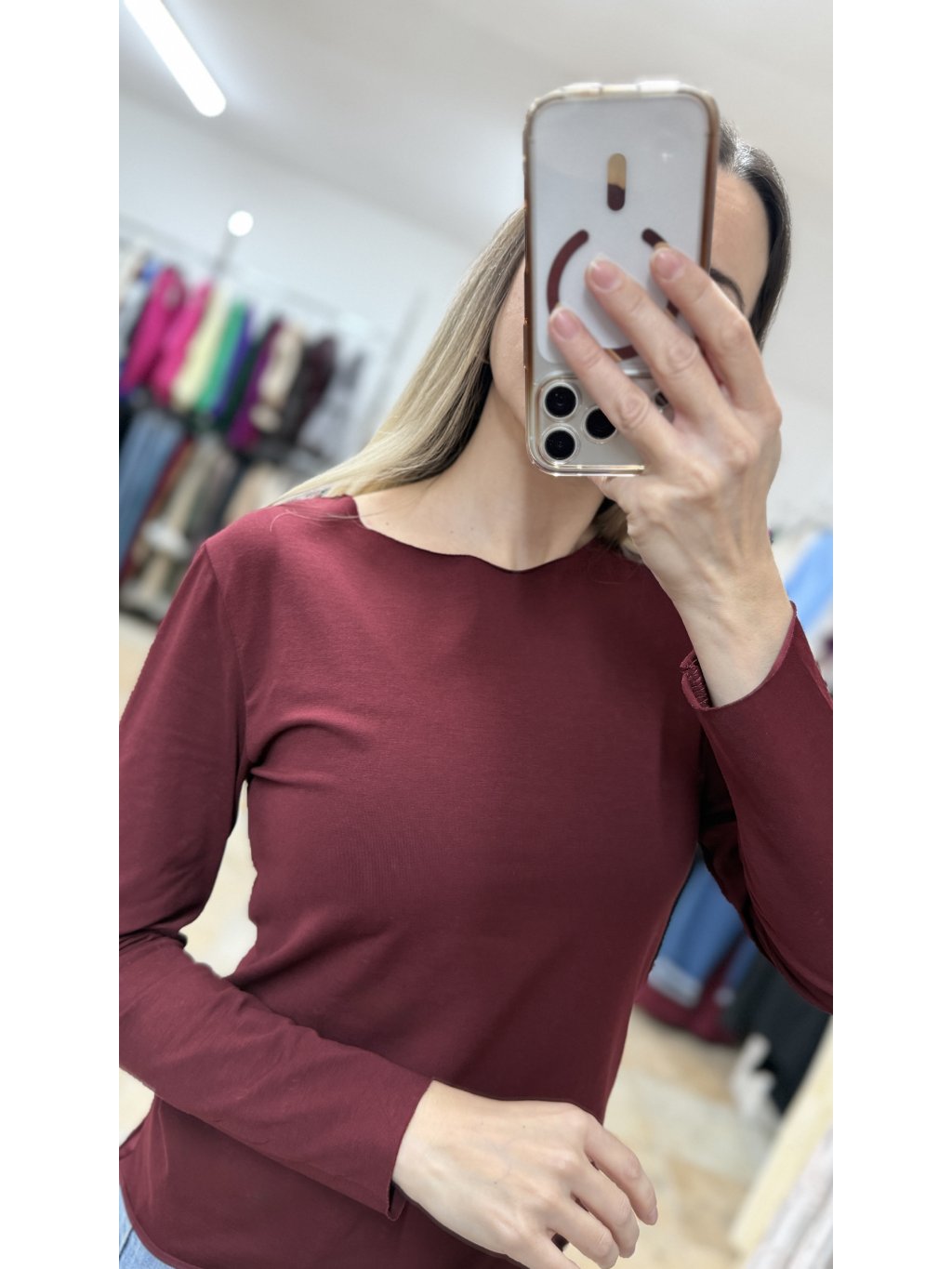 - bordové bavlnené tričko s dlhým rukávom je nadčasový a veľmi univerzálny kúsok