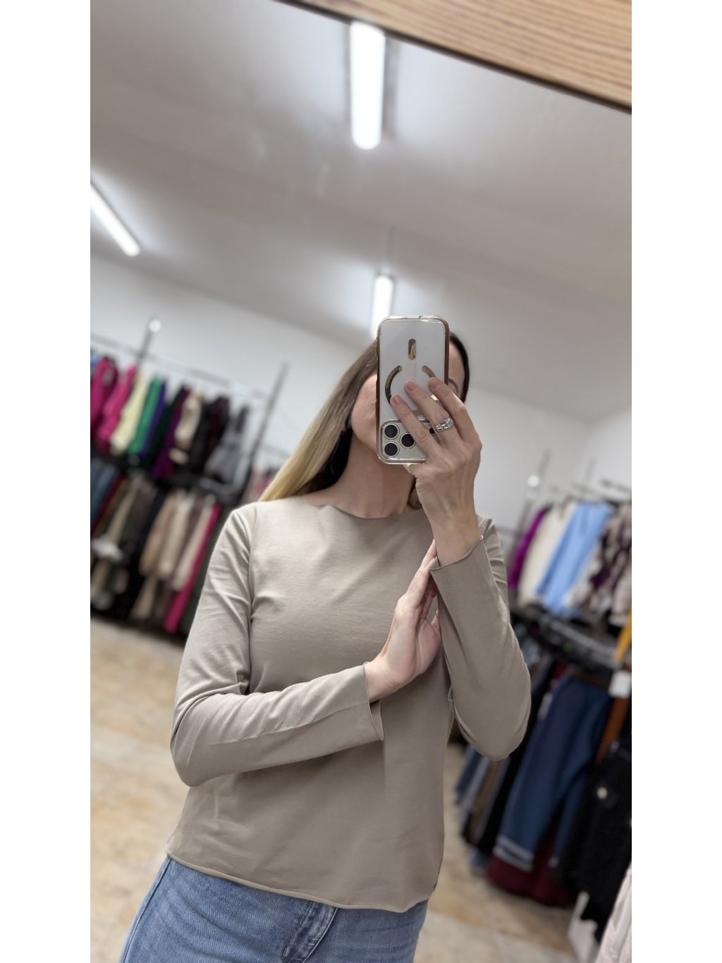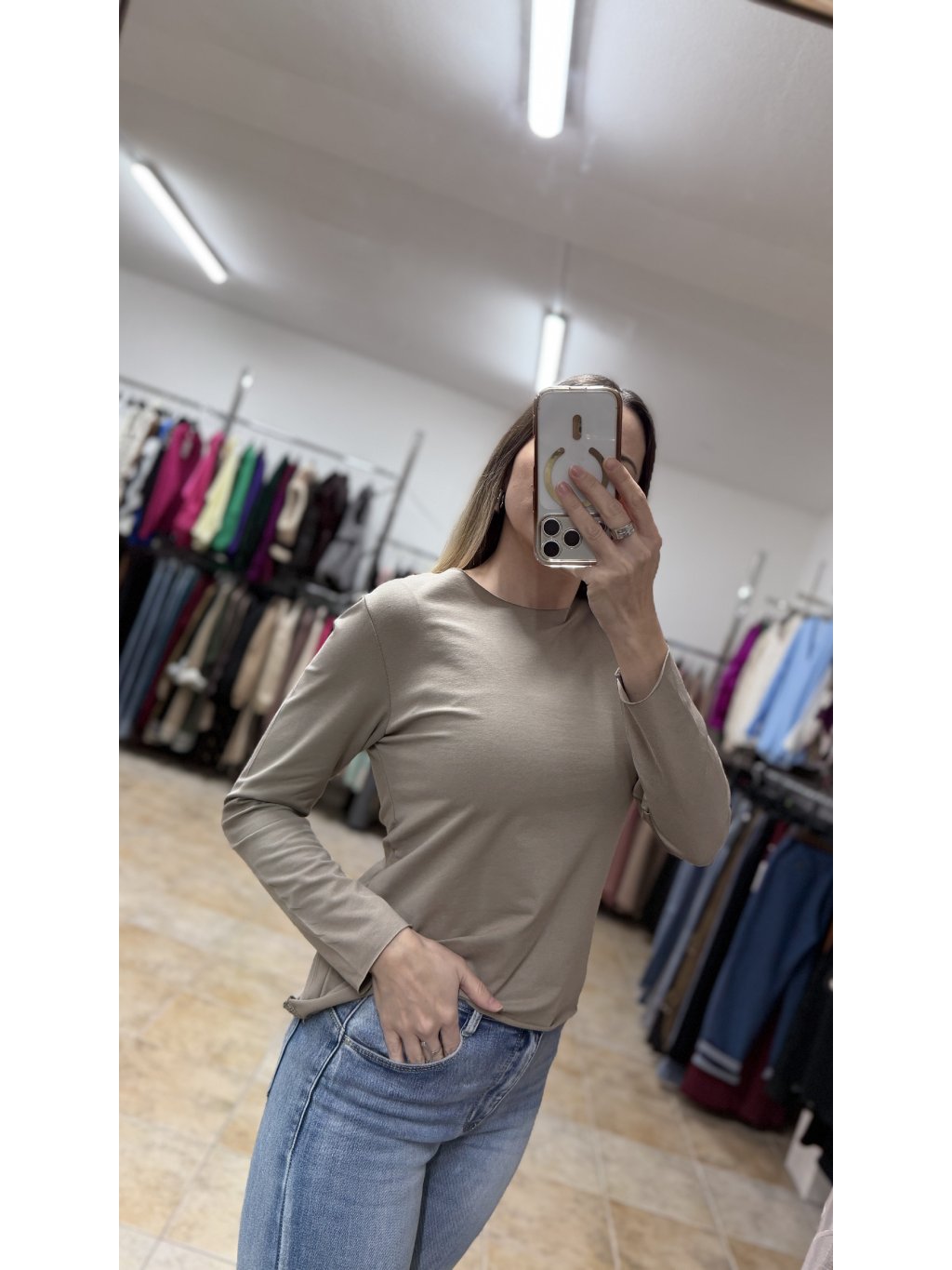 - bavlnené tričko s dlhým rukávom v jemnej sivo-béžovej farbe je nadčasový a veľmi univerzálny kúsok