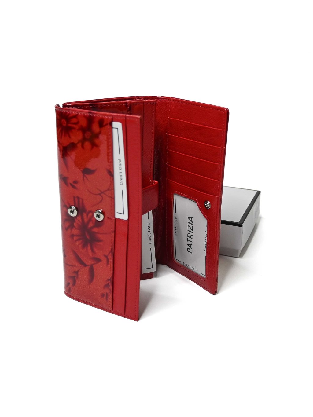 - peňaženka sa zatvára na patentku a po otvorení sa rozvinie praktický vejárikový priestor s tromi veľkými priehradkami na bankovky či doklady