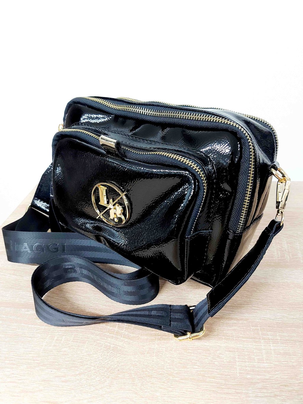 - táto čierna lesklá kabelka značky Laura Biagi je presne tým kúskom, ktorý si zamiluješ pre jeho všestrannosť