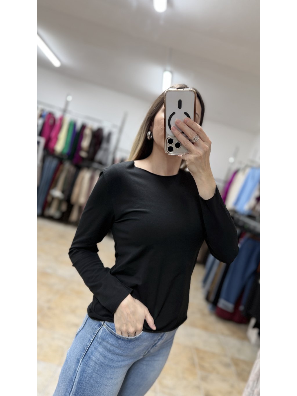 Čierne bavlnené tričko s dlhým rukávom Ele