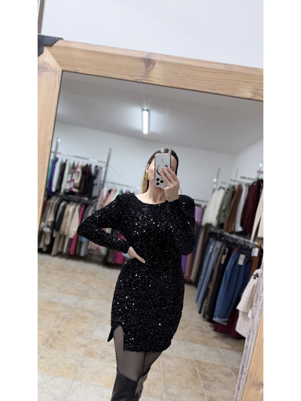 - čierne flitrované šaty sú ideálne na večierky, oslavy, silvestrovské a vianočné podujatia