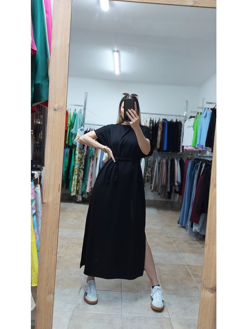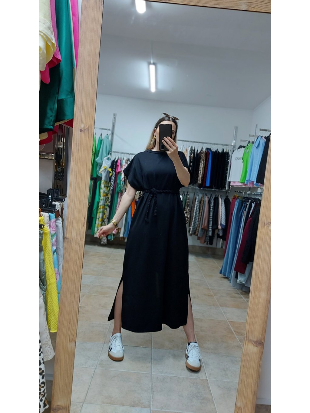 - tieto čierne letné šaty dámske kombinuj s teniskami, espadrilkami či šľapkami pre uvoľnený letný look