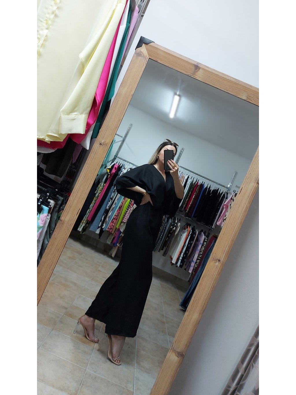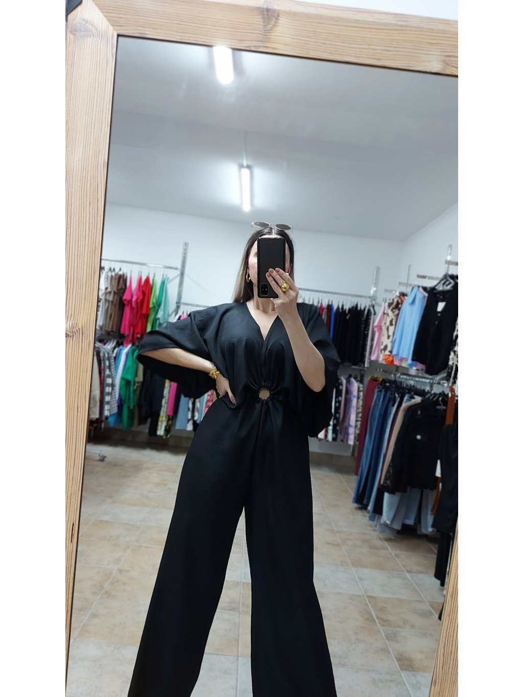 - čierny overal Dara je ušitý z ľahkého, vzdušného materiálu, ktorý krásne padá a príjemne sa nosí aj počas horúčav