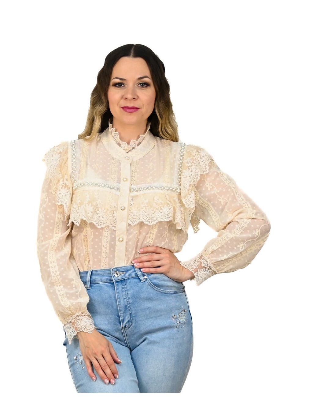 Čipkovaná blúzka s perličkami Fiora