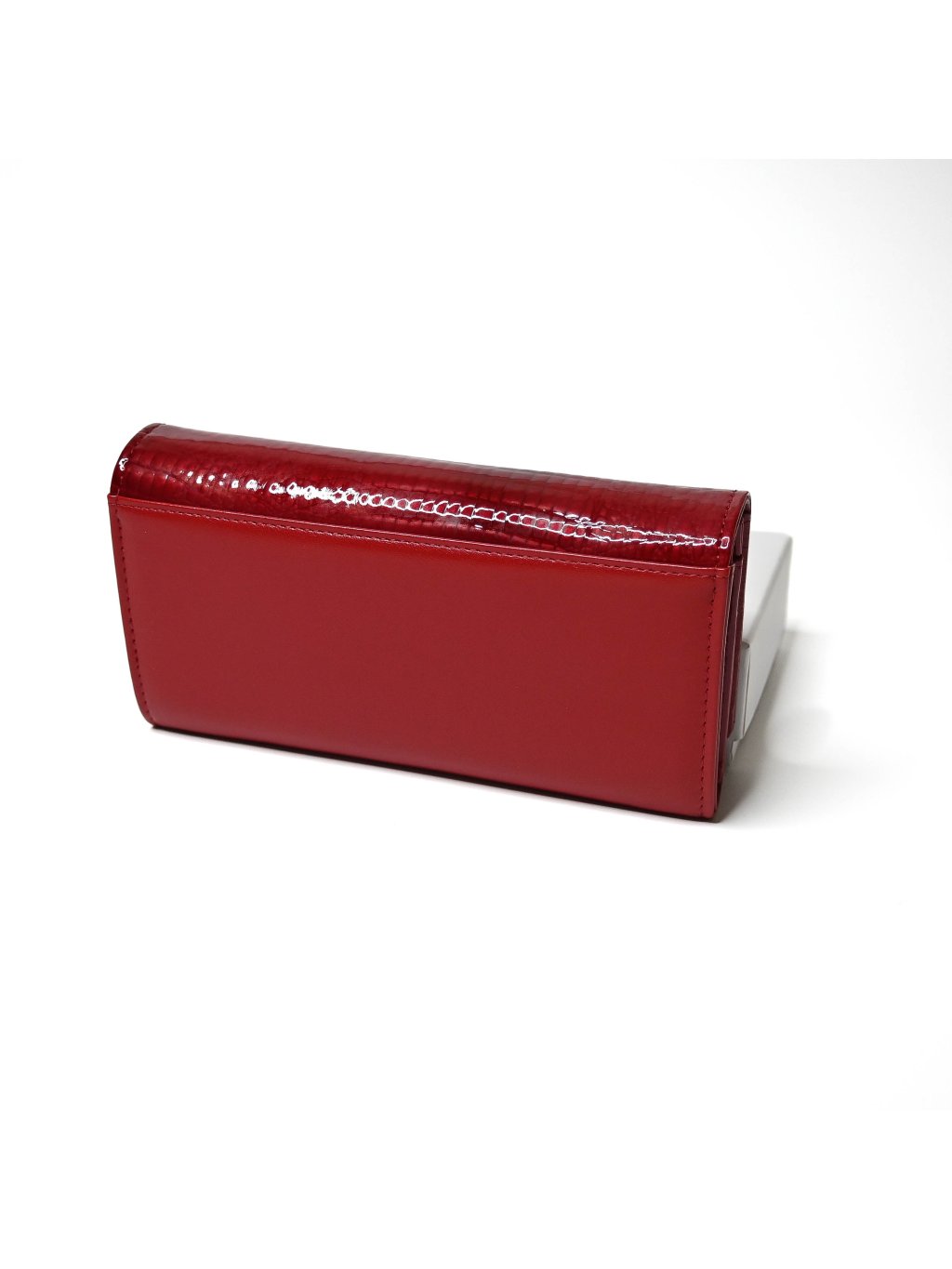 - lesklá časť má jemne vtlačený krokodílí vzor, ktorý dodáva peňaženke luxusný vzhľad, zatiaľ čo matná koža pôsobí nadčasovo a sofistikovane
