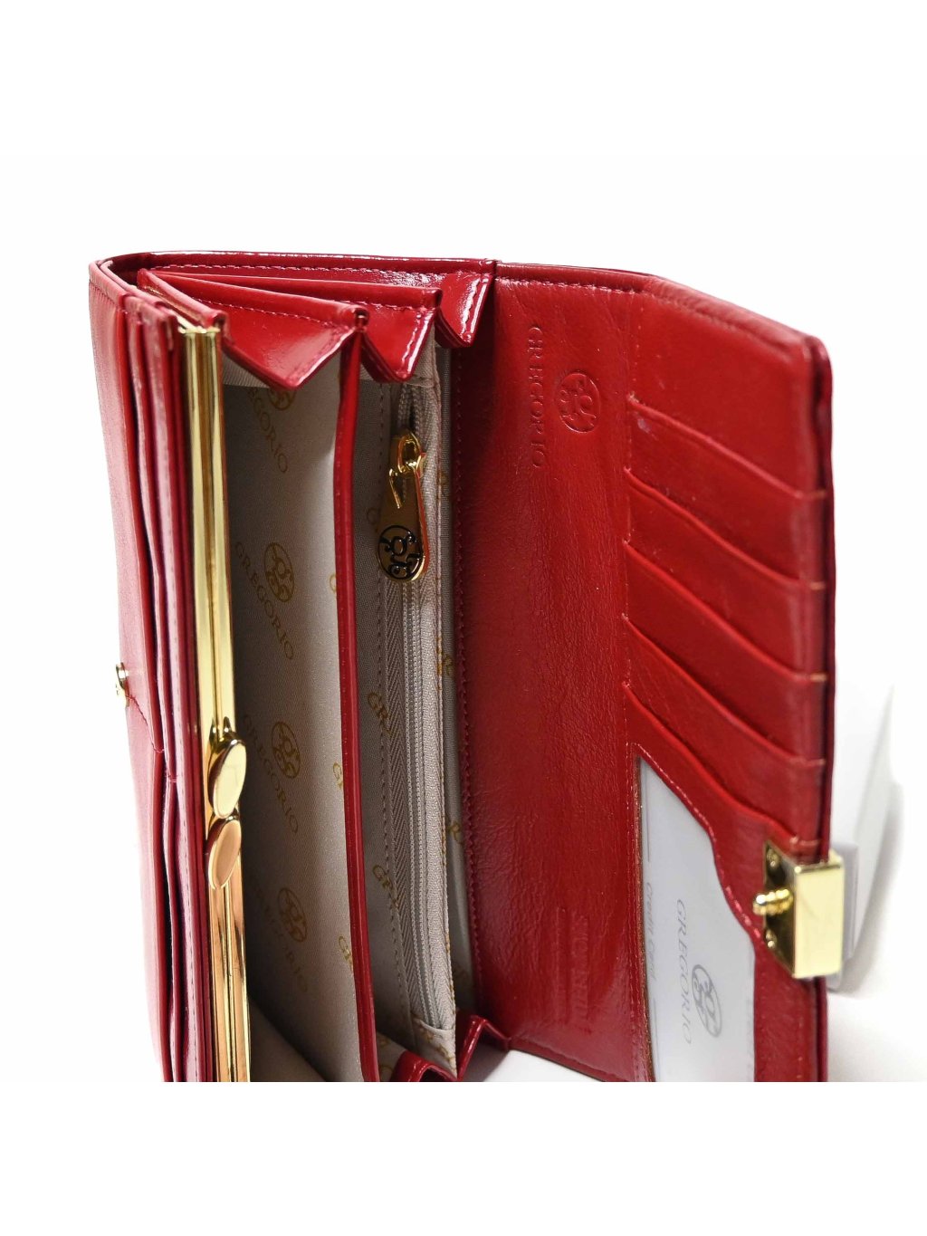 - dámska červená peňaženka Gregorio je vyrobená z kvalitnej kombinácie lesklej a matnej kože