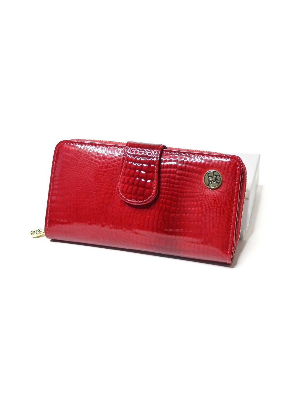 - predná strana peňaženky je vyrobená z lesklého materiálu s unikátnym krokodílim vzorom, ktorý jej dodáva luxusný vzhľad