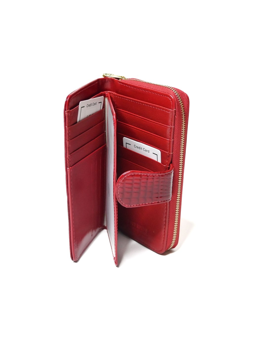- táto dámska peňaženka červená sa otvára do dvoch priestranných komôr