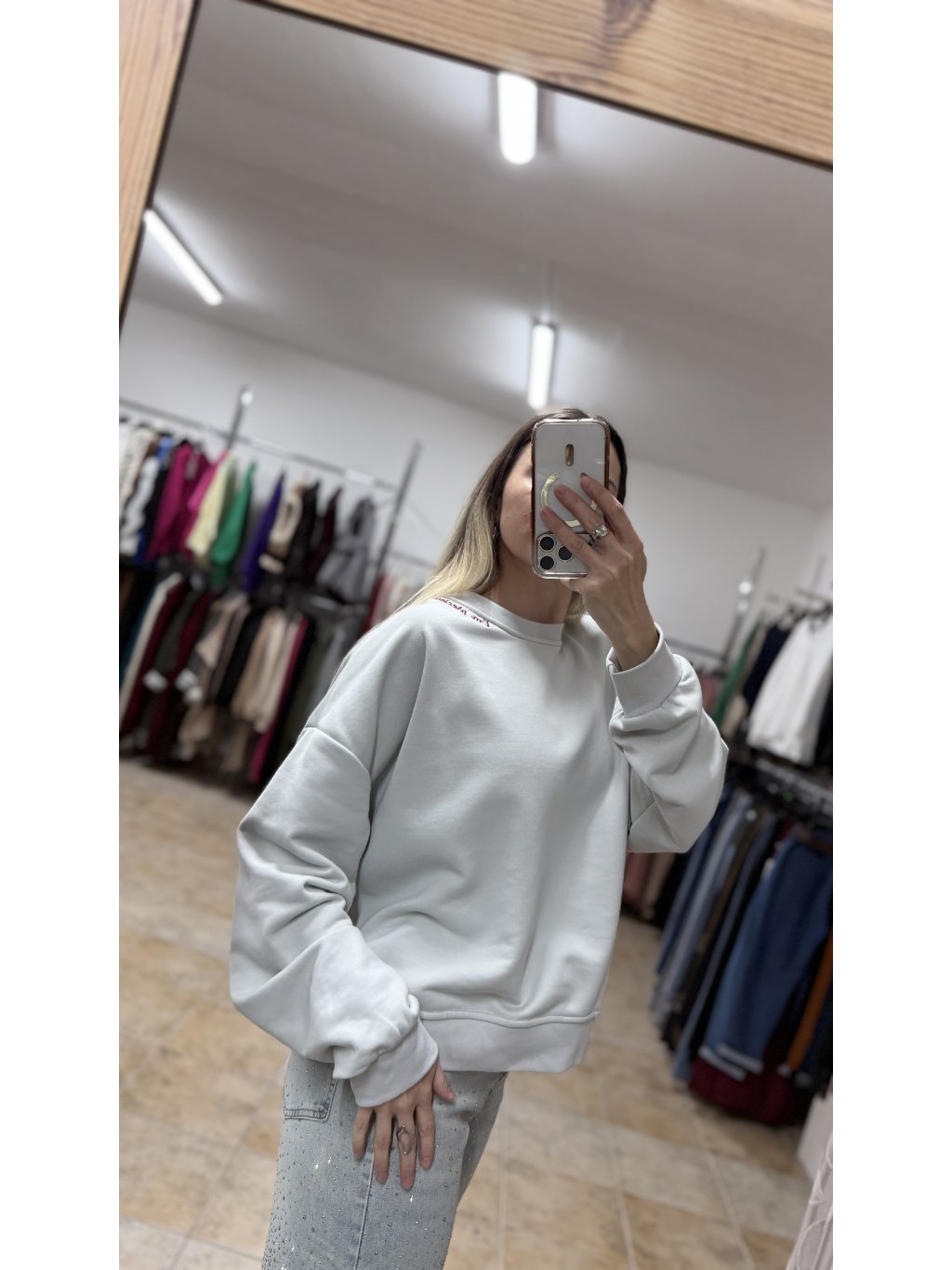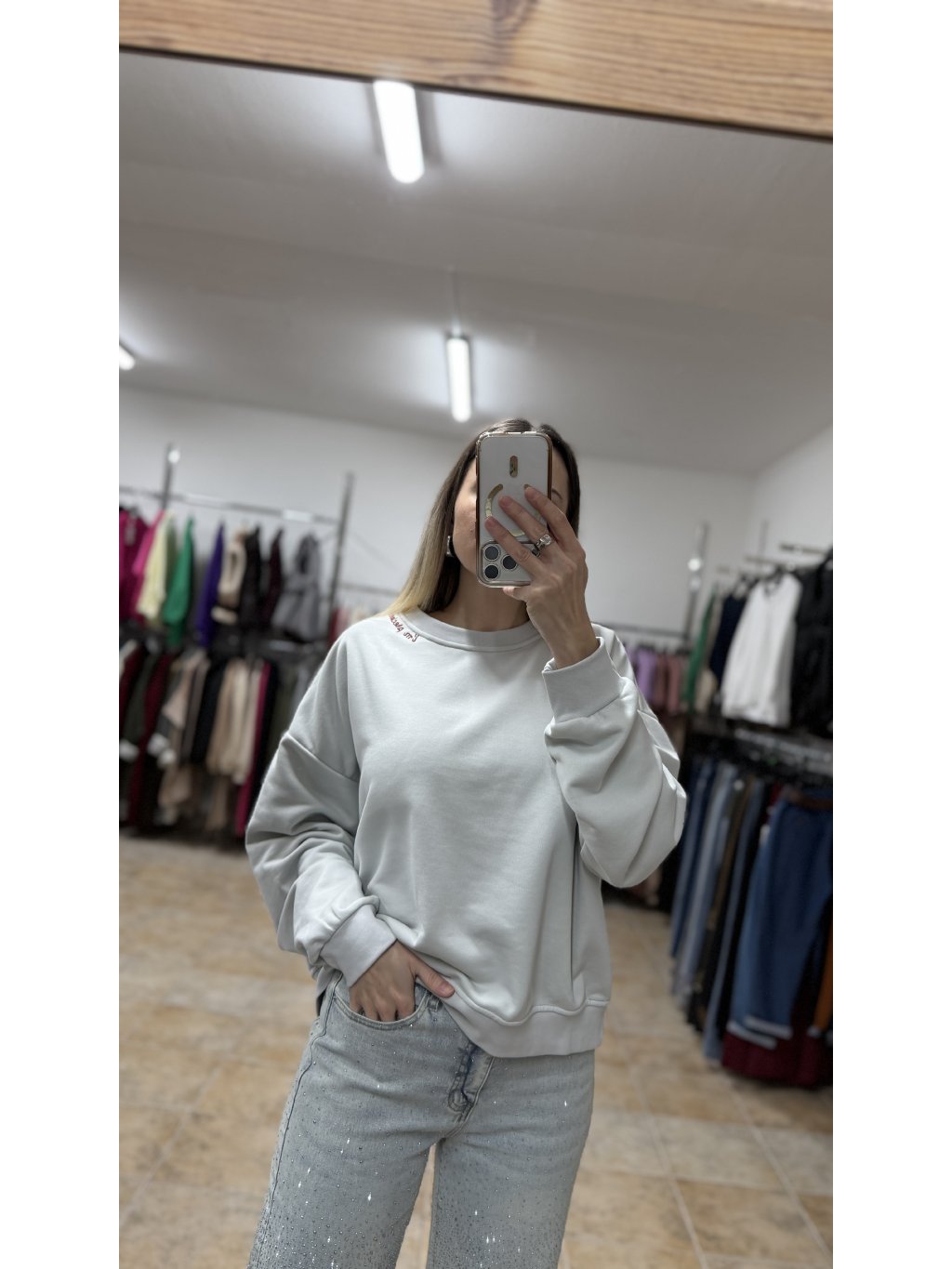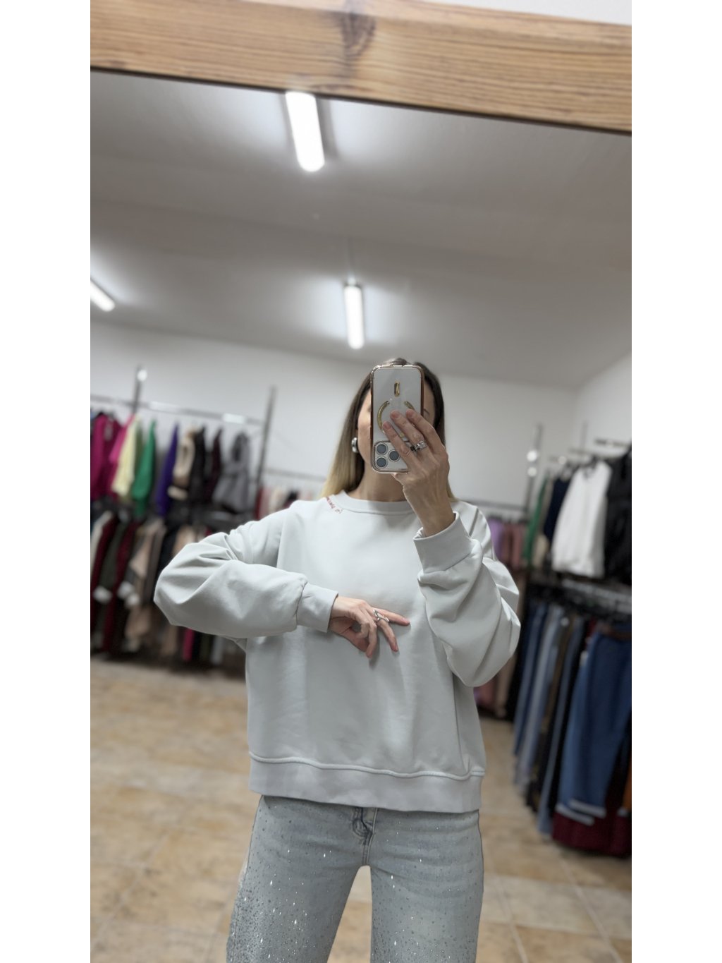 - dámska sivá mikina v jemnom sivom odtieni je nadčasový kúsok, ktorý ľahko zapadne do každodenného šatníka