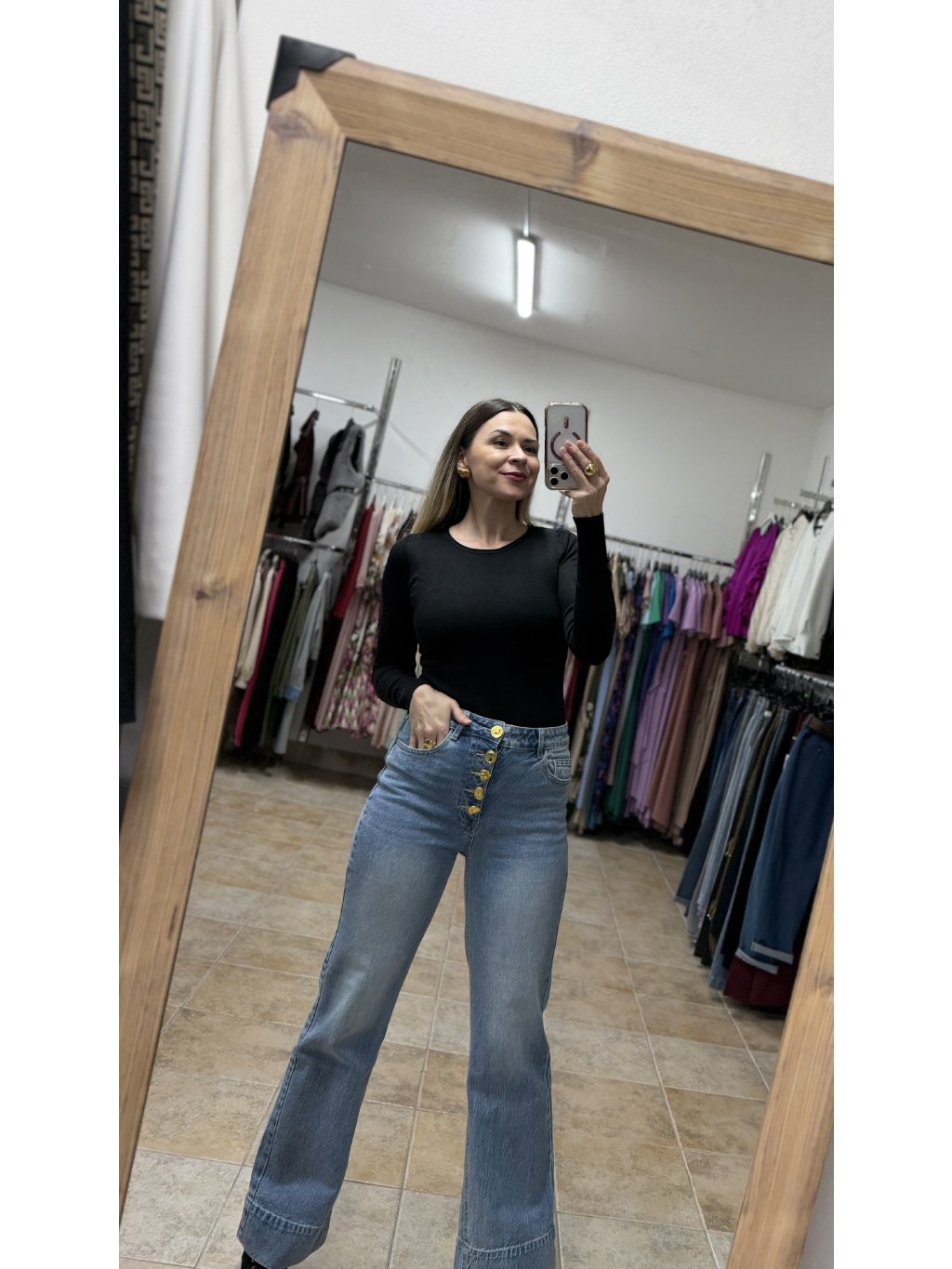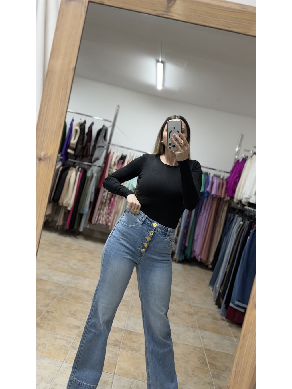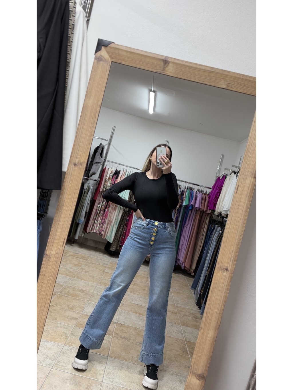- materiál je jemne elastický, vďaka čomu sa rifle pohodlne nosia a prispôsobia siluete počas celého dňa