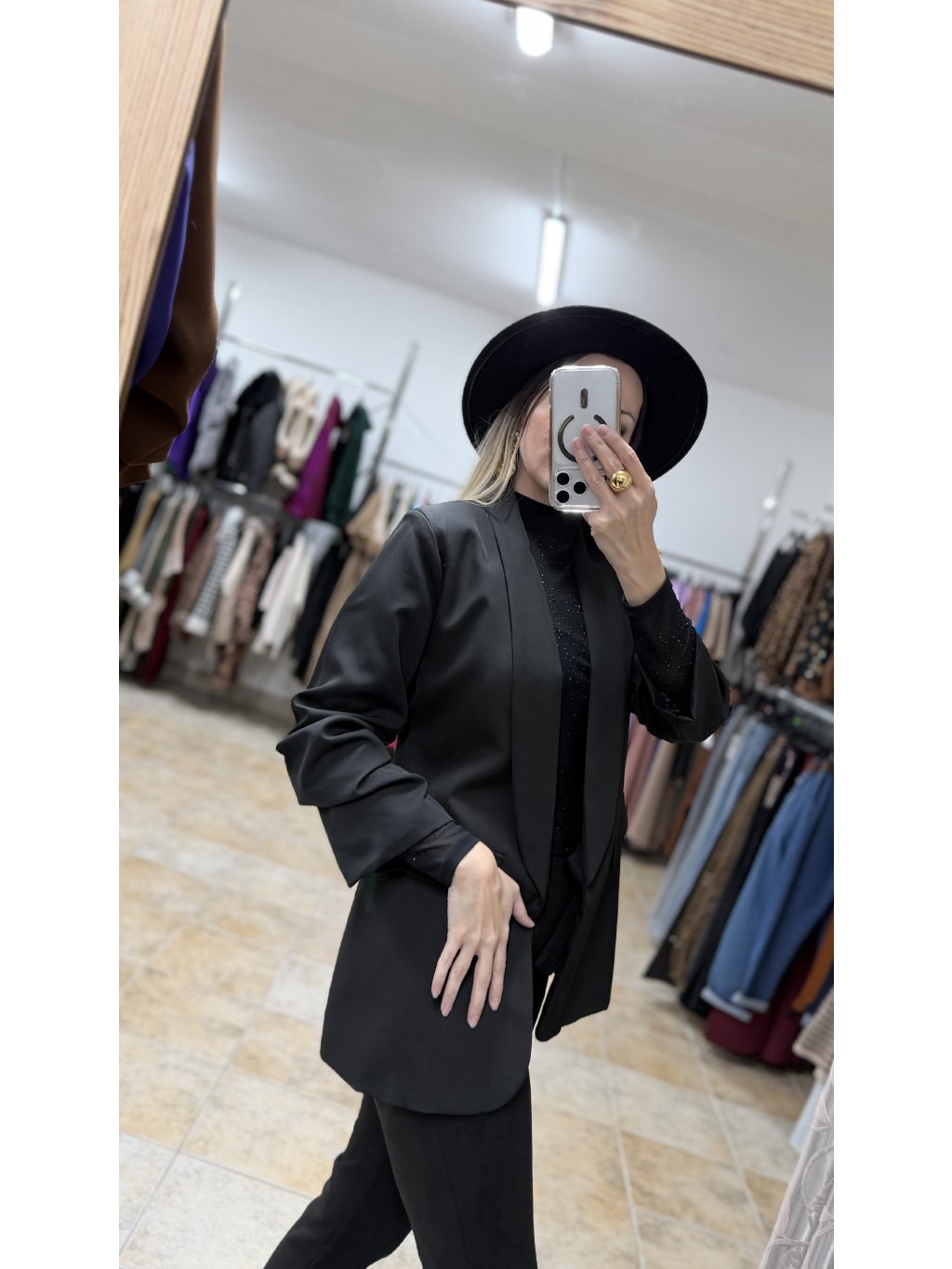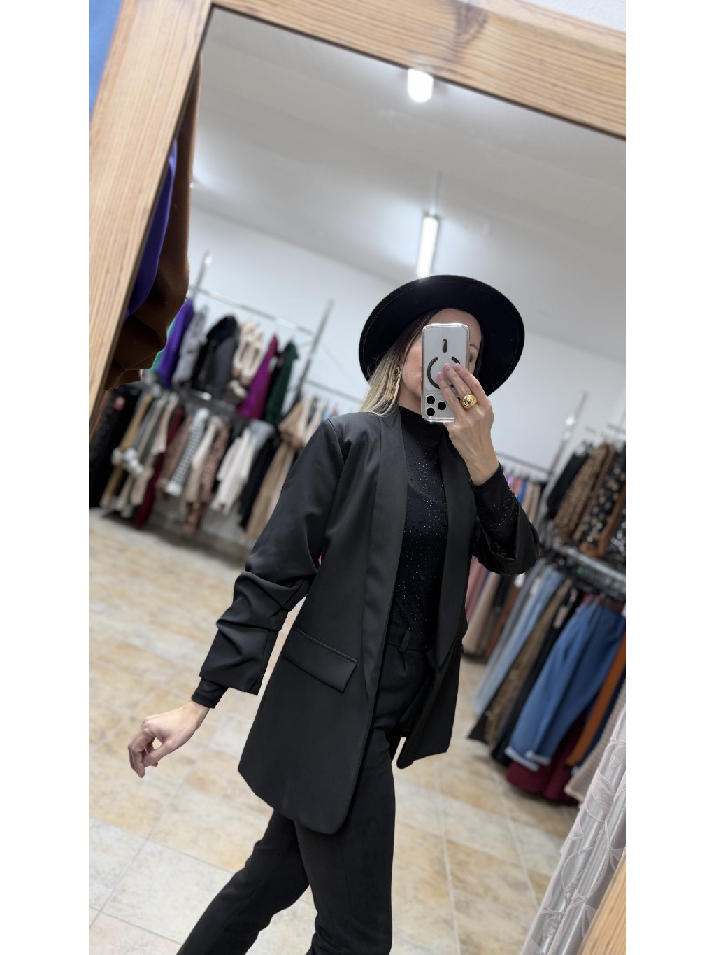 - toto dámske čierne sako nemá zapínanie, čo mu dodáva ľahkosť a voľnosť pohybu