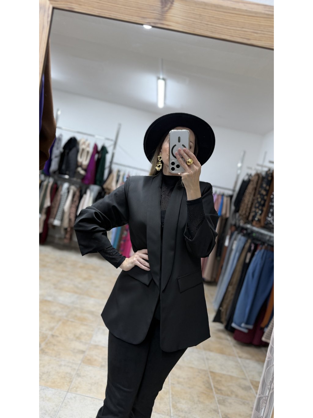 - dámske čierne sako z kvalitného kostýmového materiálu kombinuje klasickú eleganciu s moderným nádychom