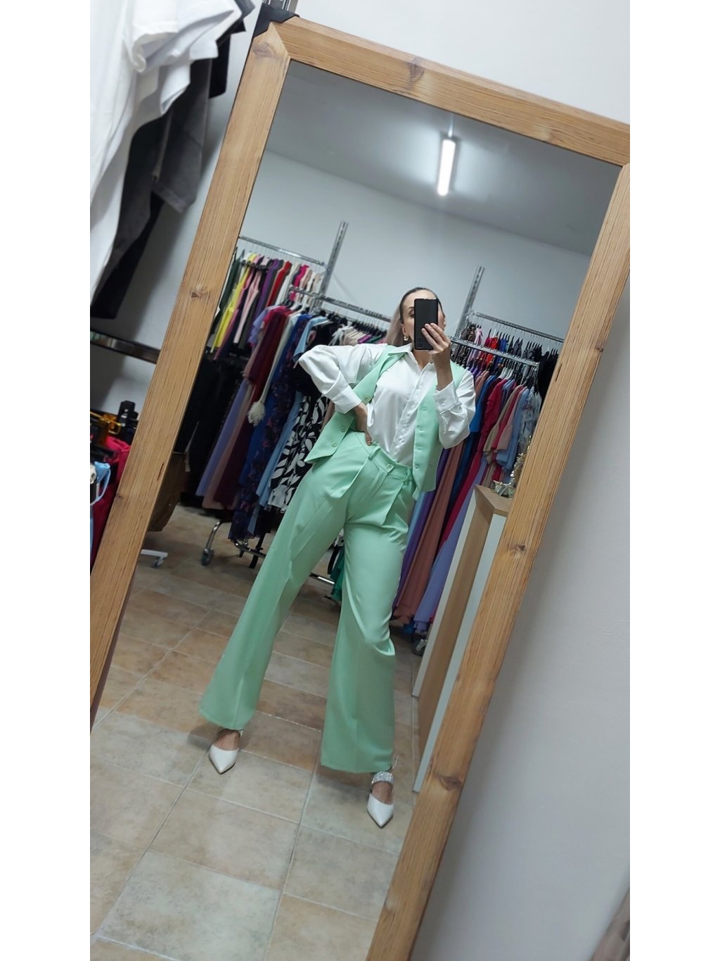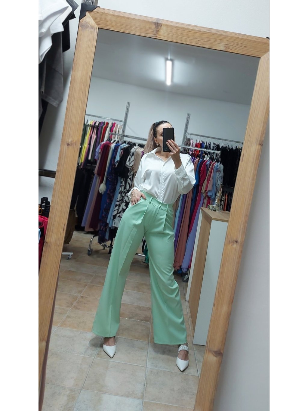 - tieto tyrkysové dámske elegantné nohavice na puky sa dokonale hodia k vestám a sakám ale skvele vyzerajú aj s jednoduchou košeľou, blúzkou alebo úpletovým topom