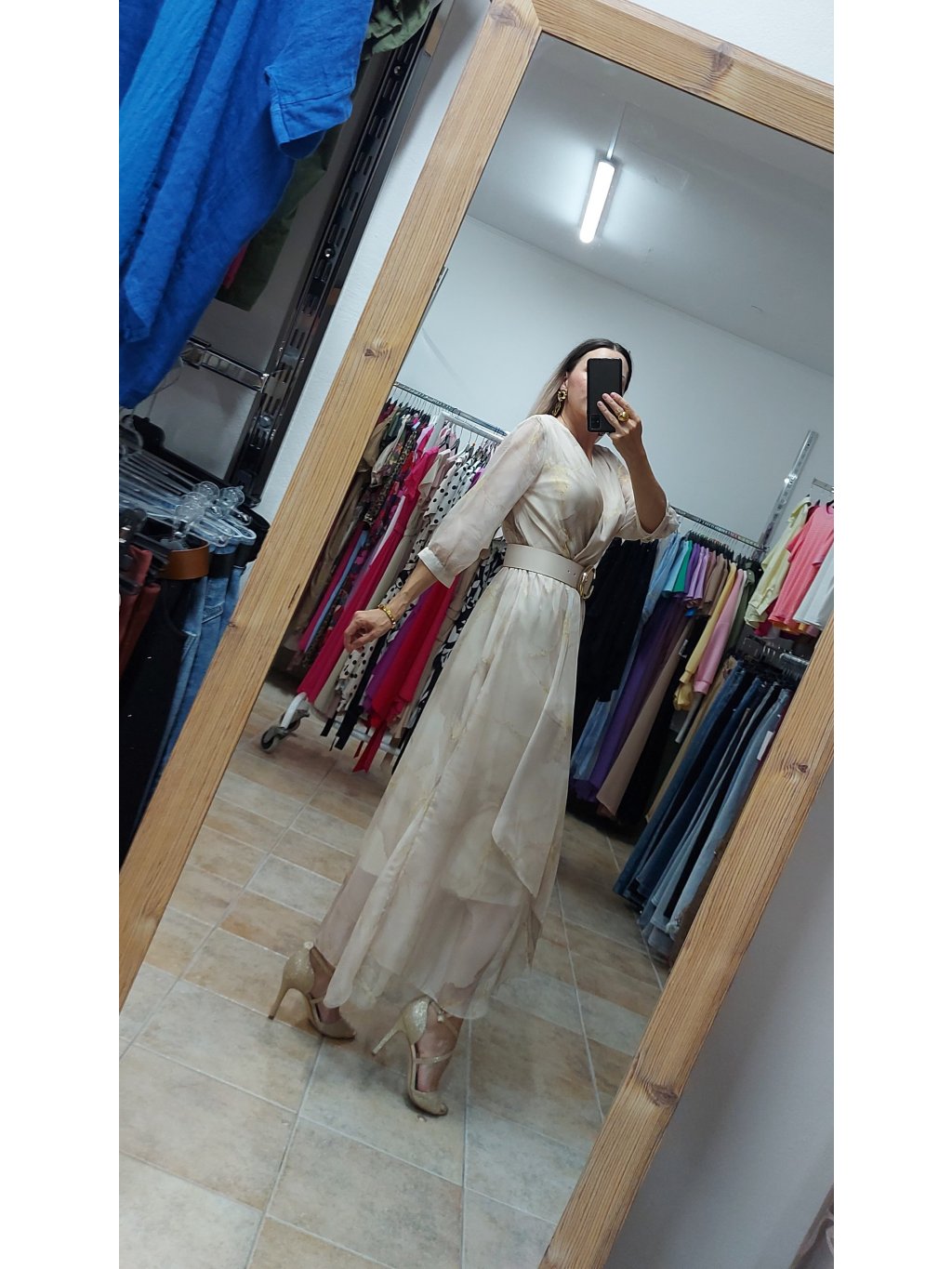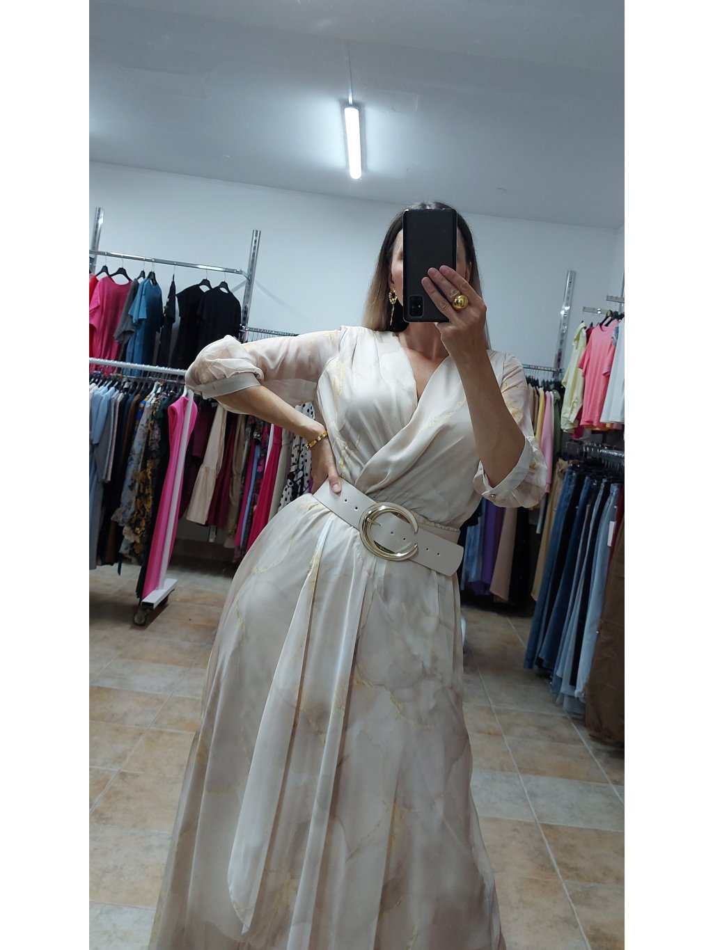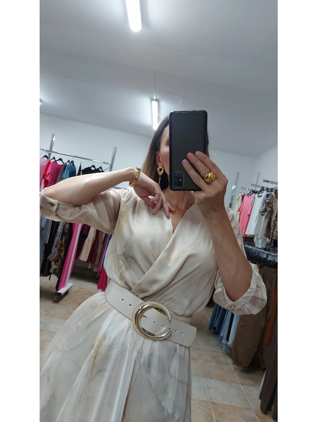 - súčasťou je aj opasok s ozdobnou zlatou prackou v tvare polmesiaca, ktorý krásne zvýrazní pás – no šaty môžeš nosiť aj bez neho
