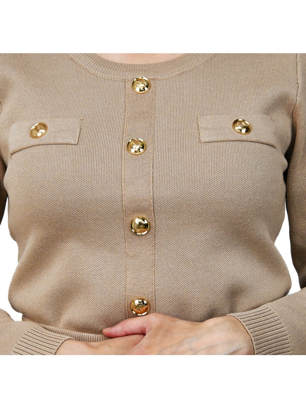 - cez celý predný diel ho zdobí rada zlatých gombíkov, ktoré krásne ladia s jemne elegantným charakterom celého kompletu