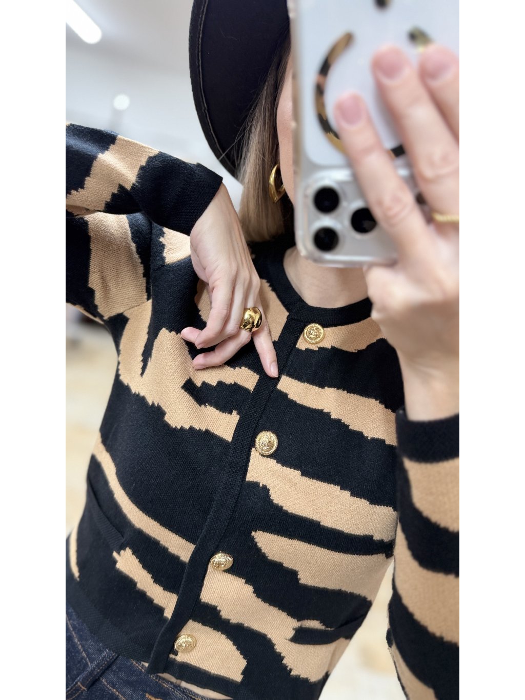 - tento dámsky kardigán v elegantnej béžovo-čiernej kombinácii spája jemnosť, nadčasovosť a francúzsky šarm