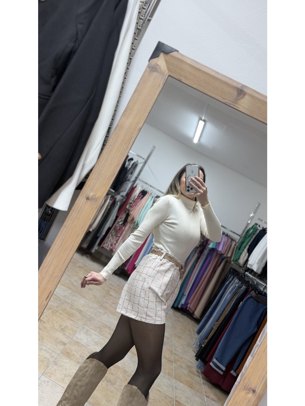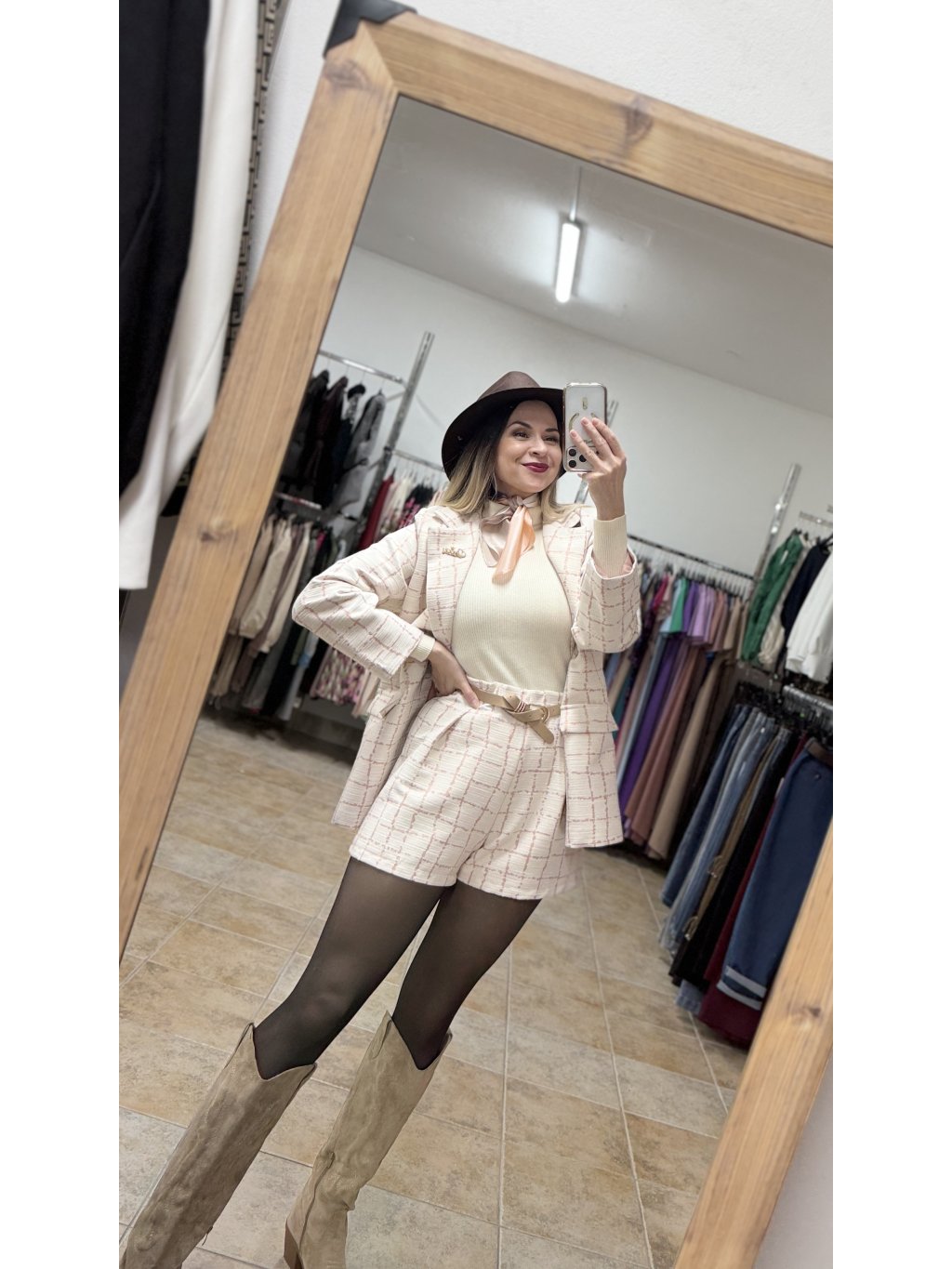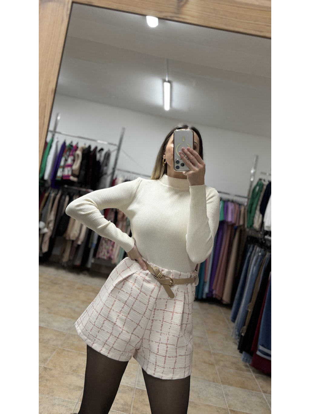 - súčasťou setu je aj tenký koženkový opasok so zlatou prackou, ktorý zvýrazní pás a zjednotí outfit