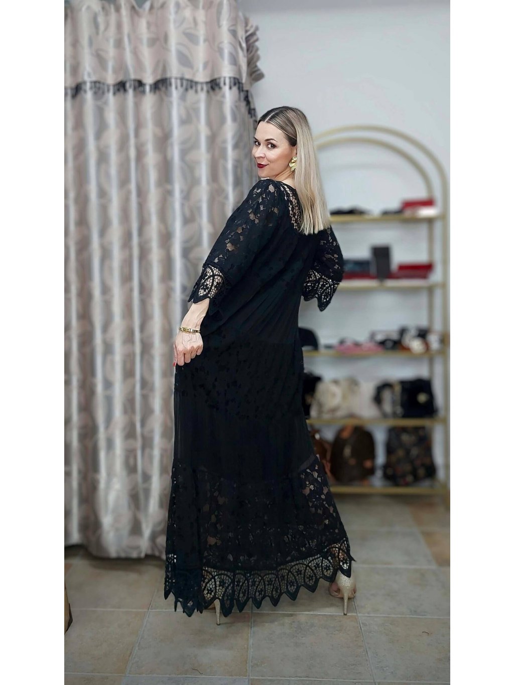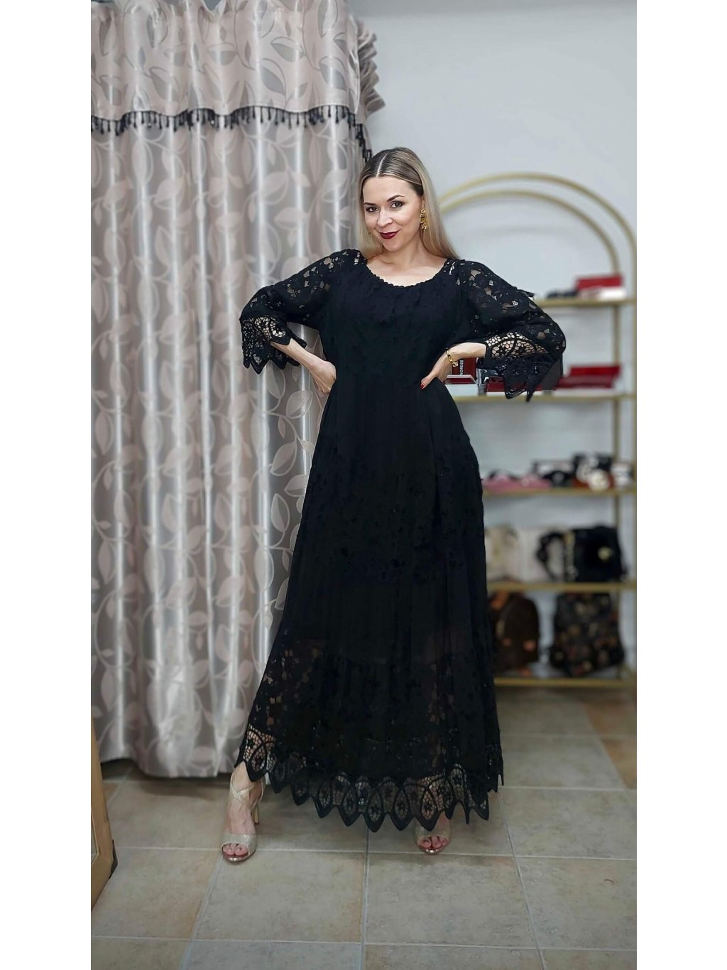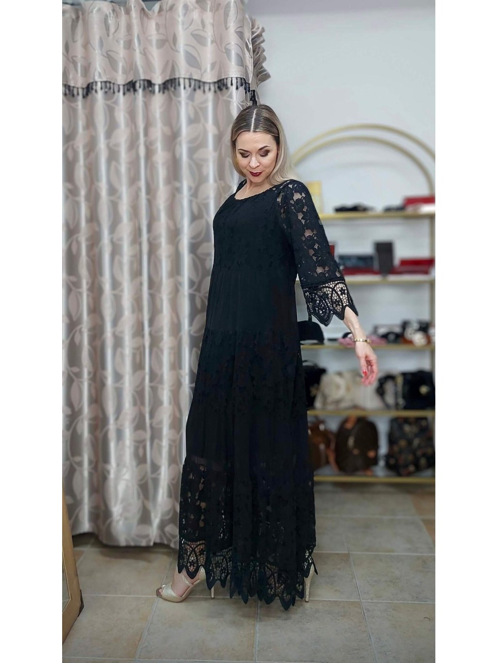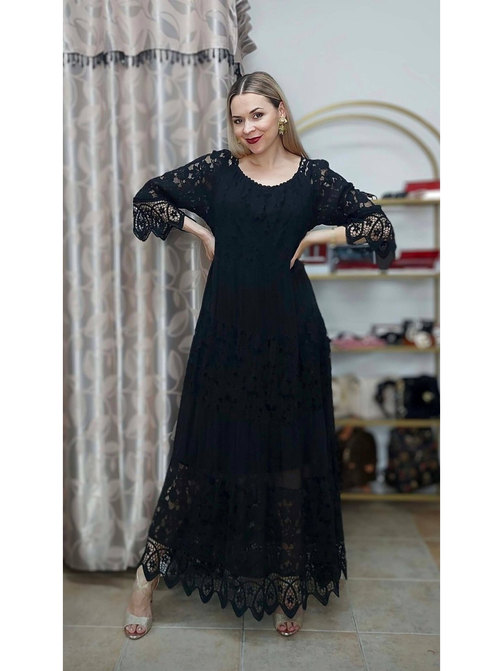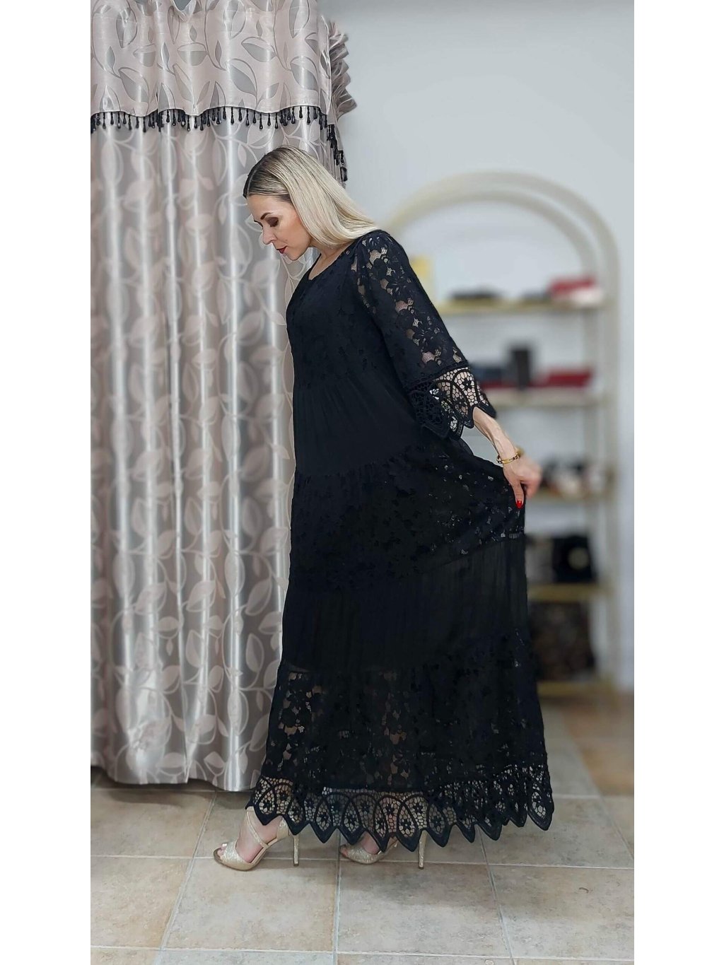 - dlhé čierne šaty Marcia sú vyrobené z luxusnej kombinácie hodvábu a bavlnenej čipky, vďaka čomu pôsobia mimoriadne vznešene a kvalitne