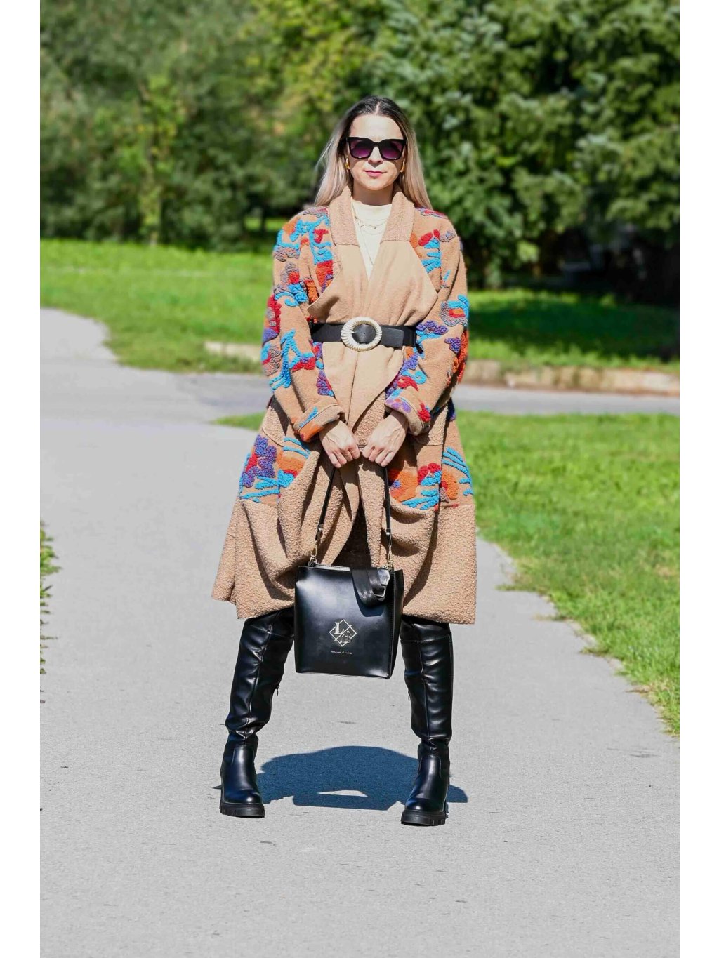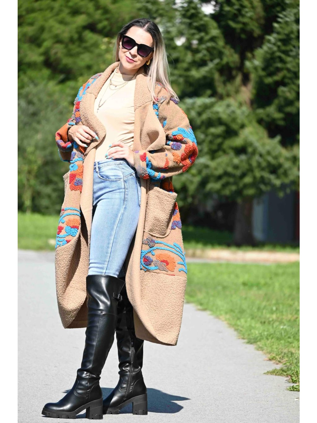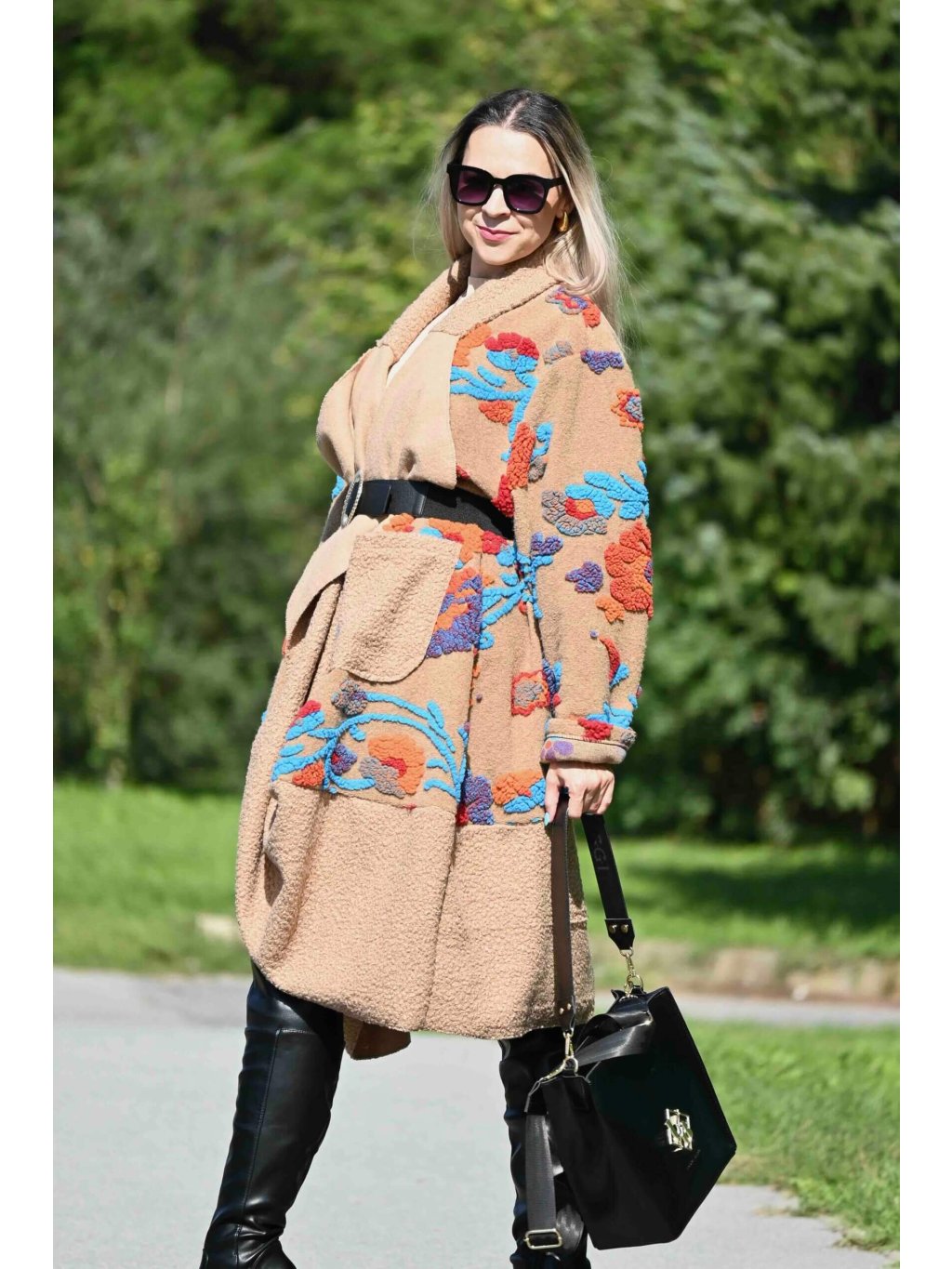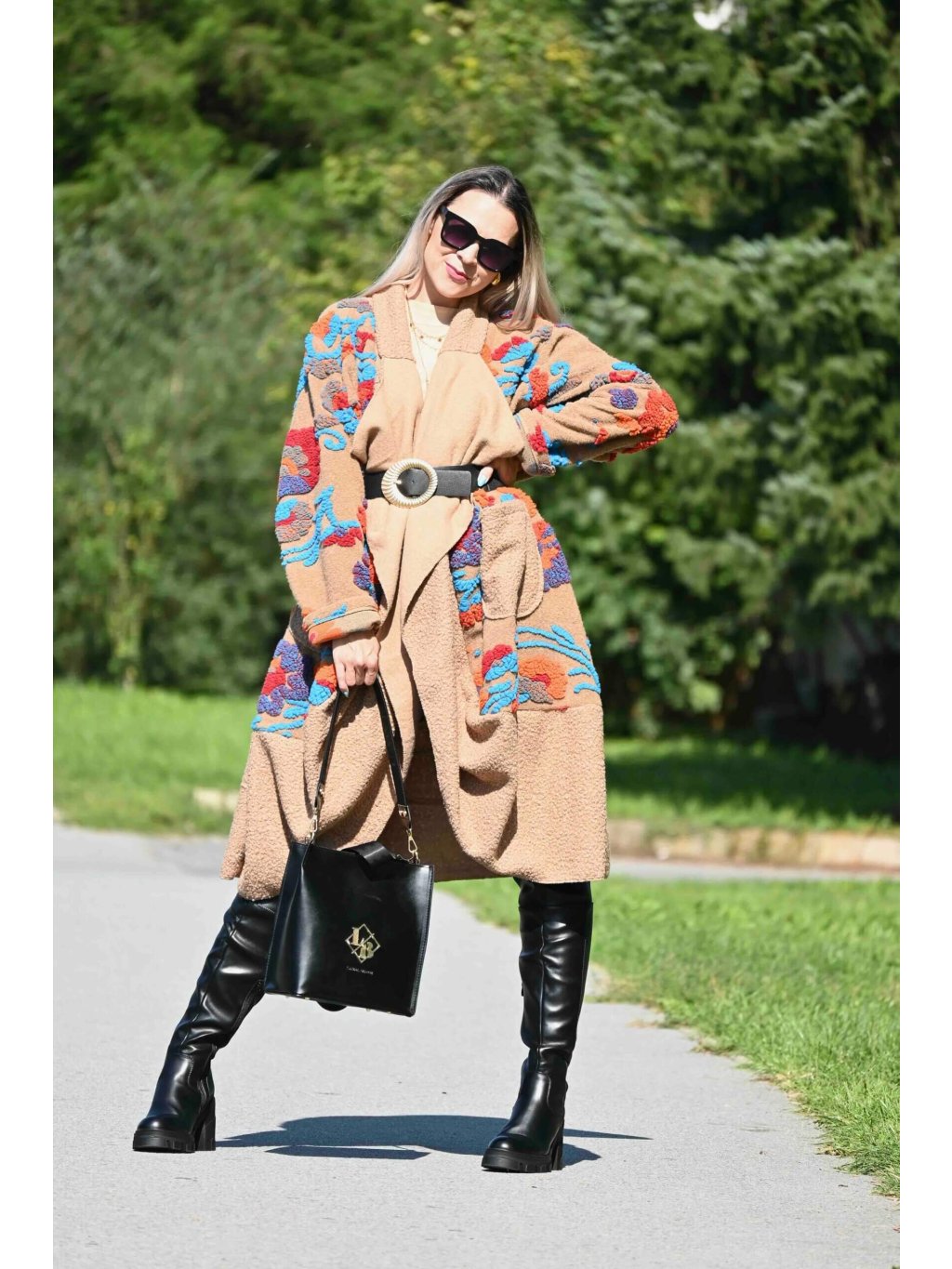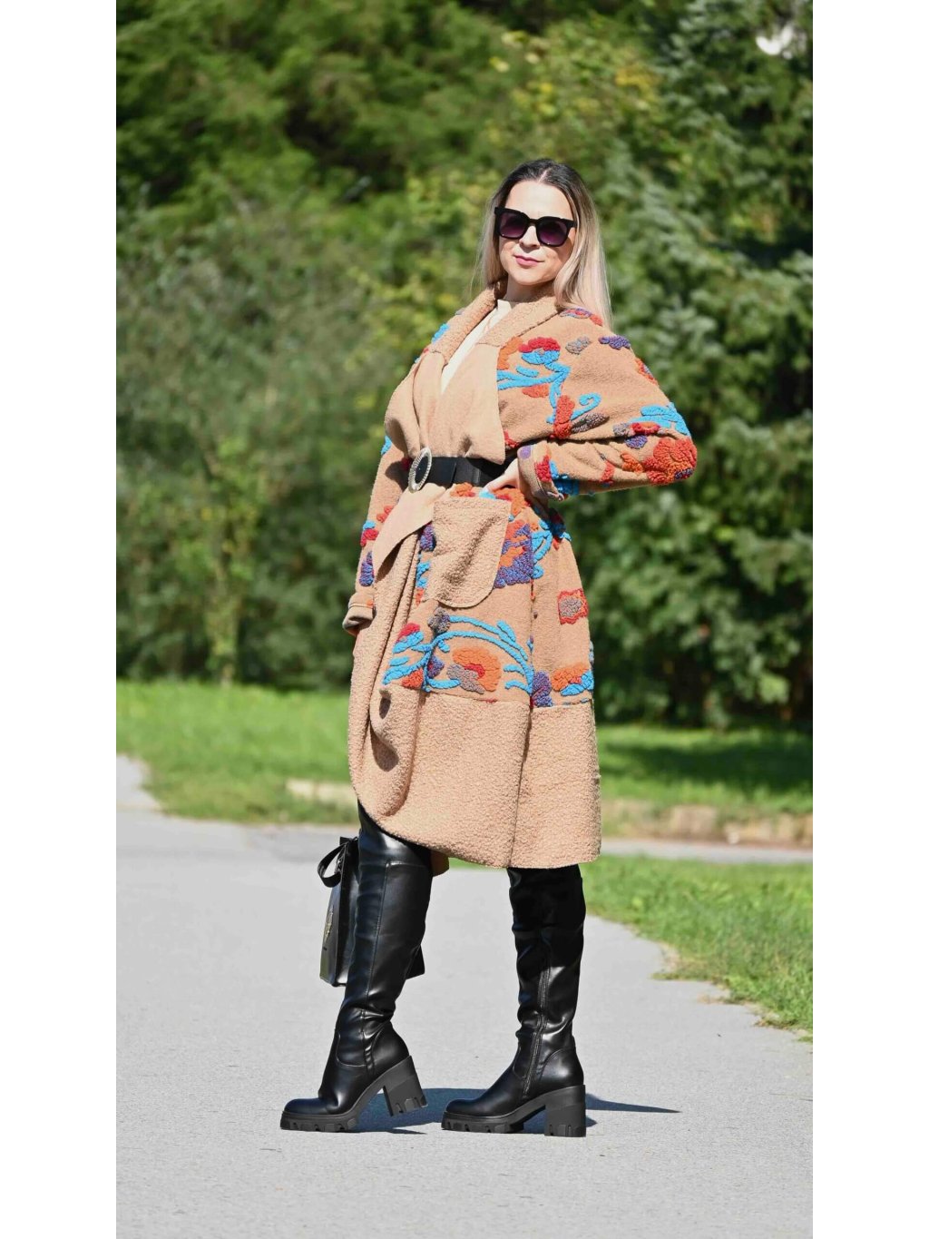 - kabát môžeš nechať voľne rozopnutý pre umelecký vibe, alebo ho previaž opaskom podľa vlastného výberu, čím vytvoríš dojem elegantného fazónkového goliera