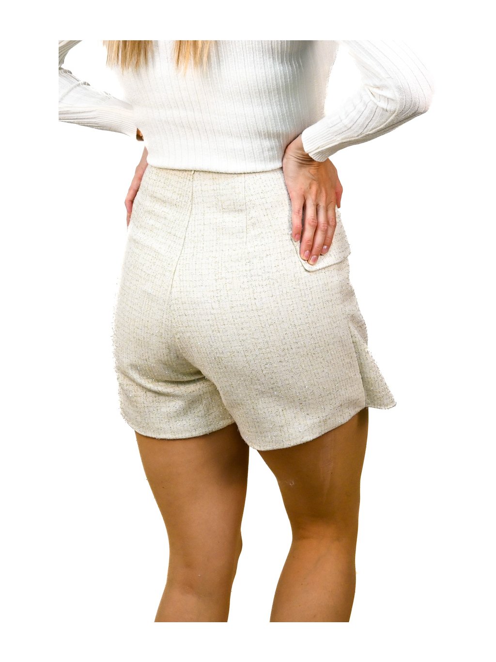 - kraťasy majú vysoký pás, zapínanie je elegantne skryté na zadnom diele cez diskrétny zips, v páse sú tvarované pomocou odševkov, vďaka čomu krásne sedia na postave.