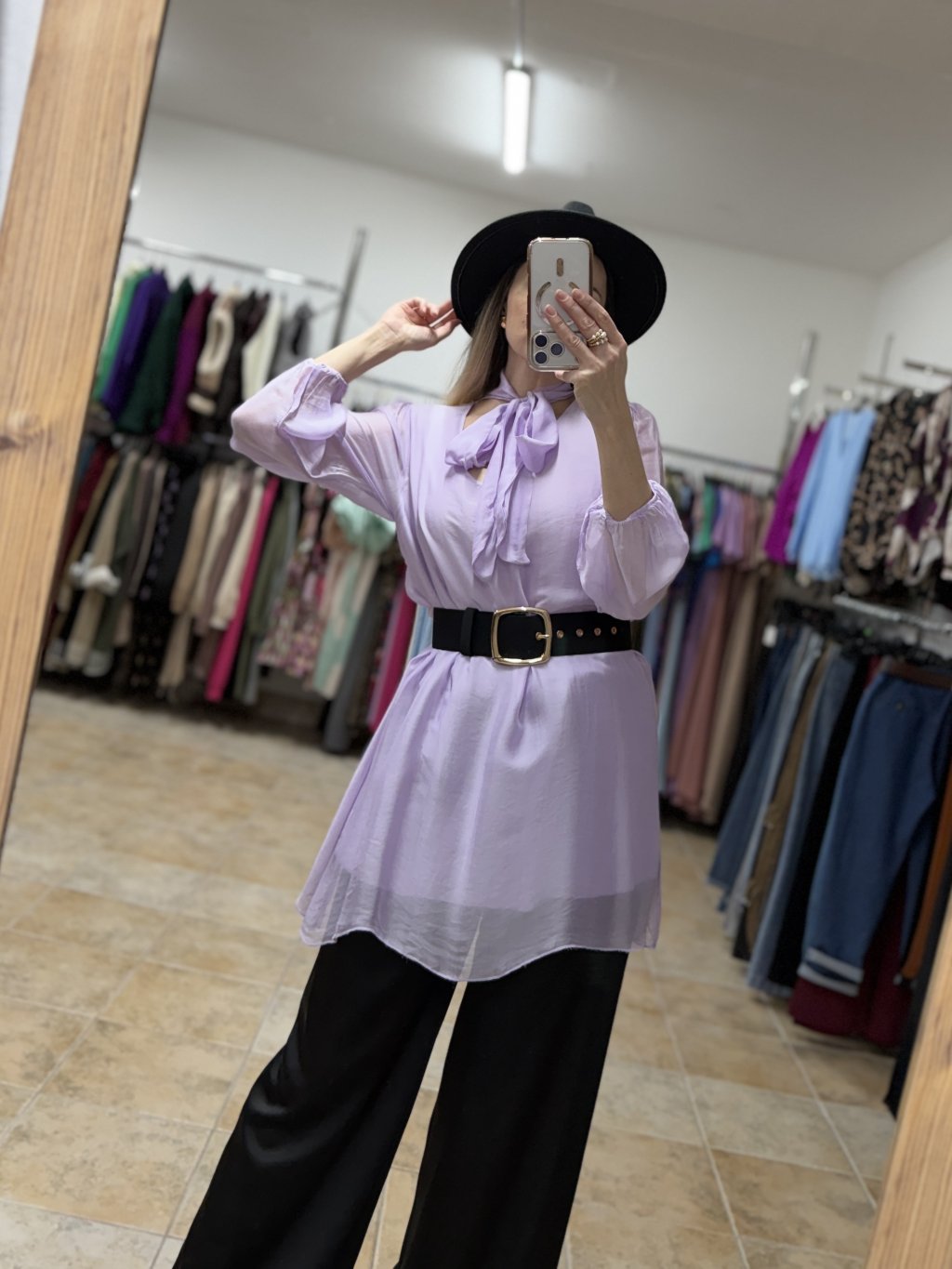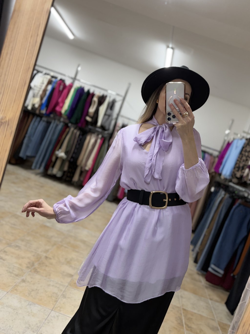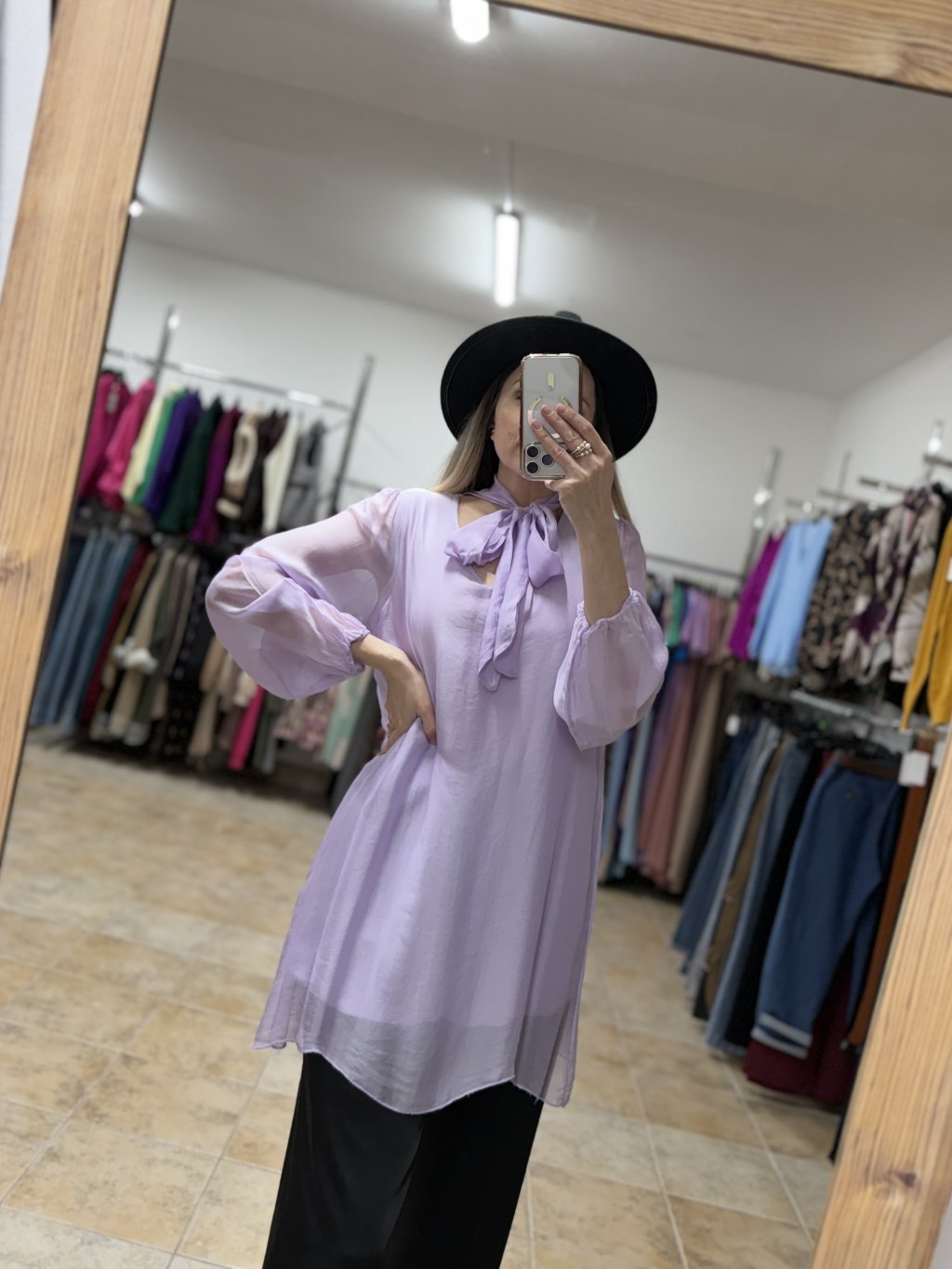 - dámska hodvábna blúzka v jemnom pastelovo fialovom odtieni s elegantným charakterom