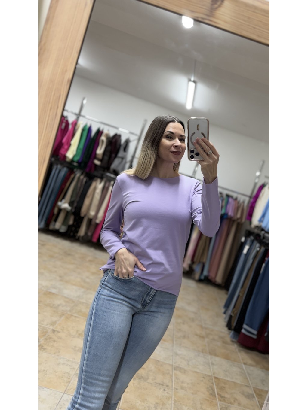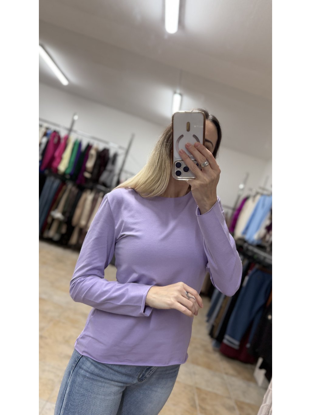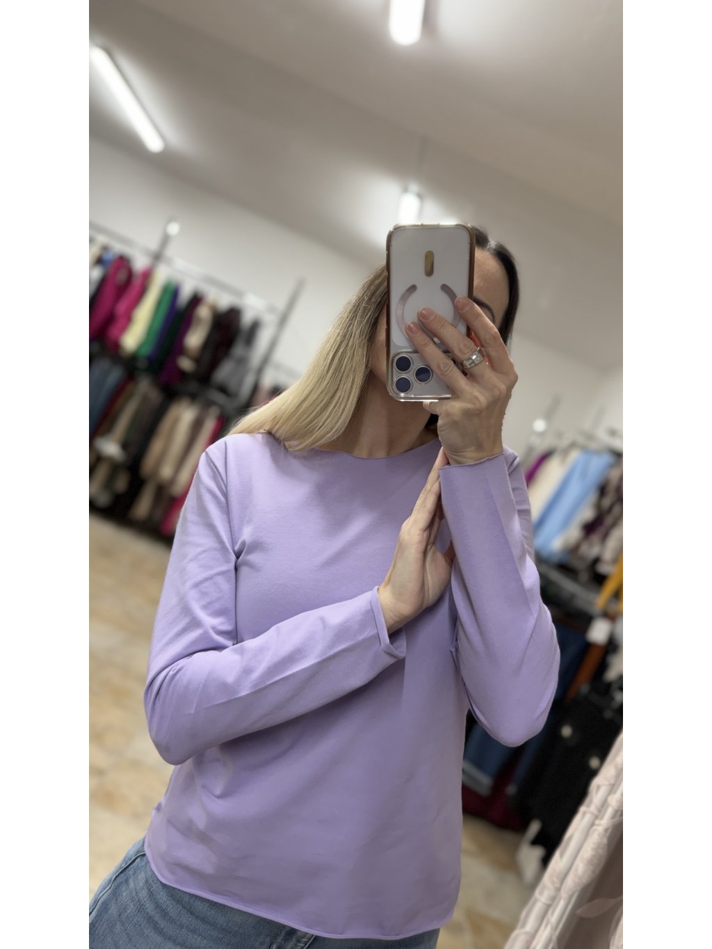 - jemne fialové bavlnené tričko s dlhým rukávom s obsahom elastanu pôsobí nežne, elegantne a ľahko kombinovateľne