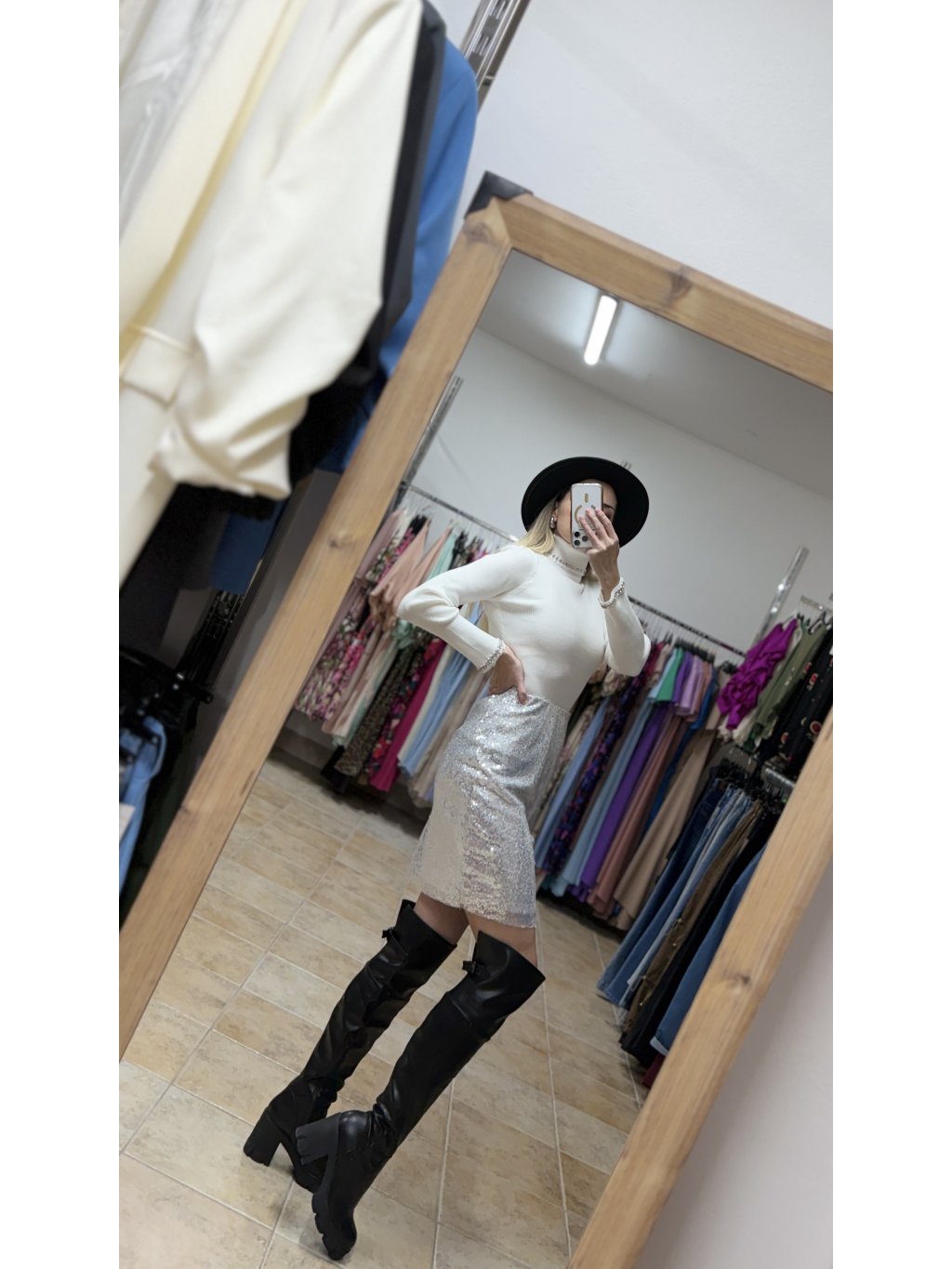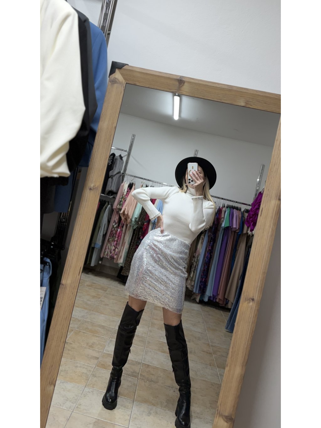 - táto kratšia flitrová strieborná sukňa patrí medzi kúsky, ktoré okamžite pritiahnu pozornosť