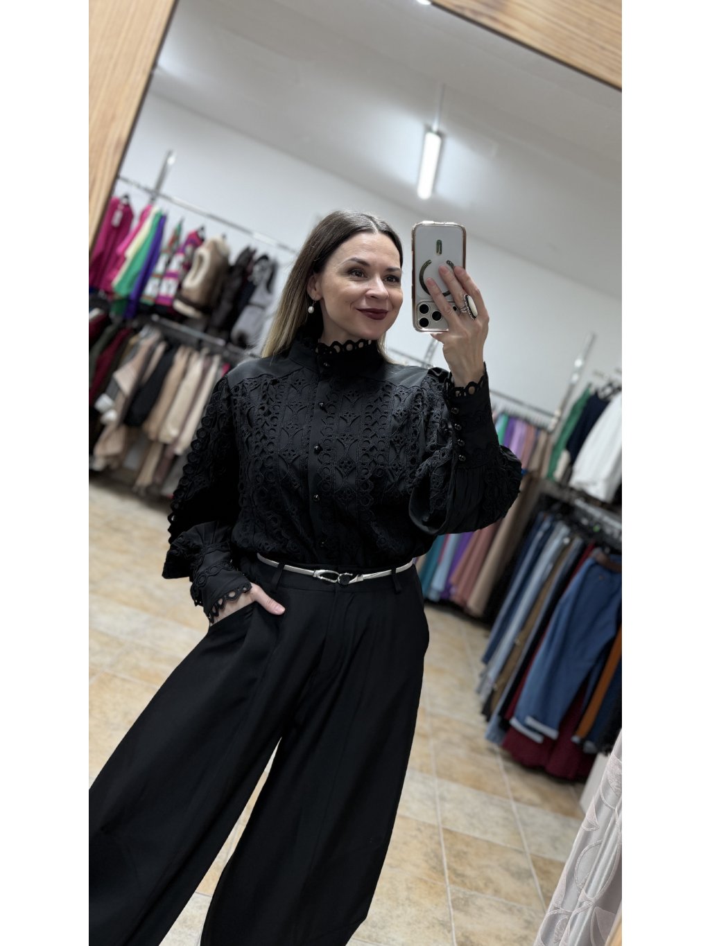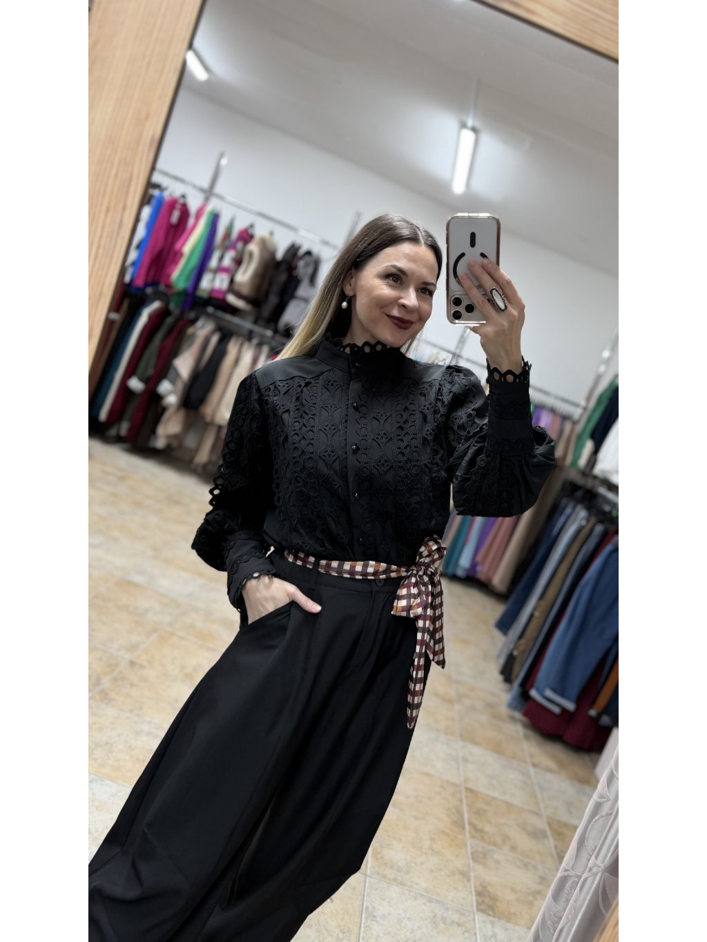 - čierna farba podčiarkuje nadčasovosť a univerzálnosť blúzky a umožňuje jej celoročné nosenie