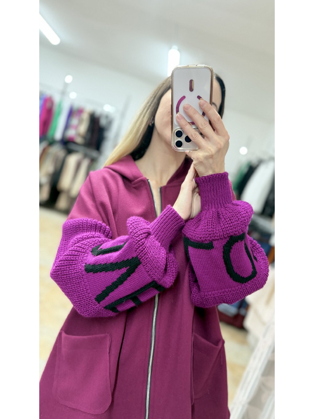 - zapínanie je riešené strieborným zipsom po celej dĺžke, čo z nej robí praktický kúsok na vrstvenie