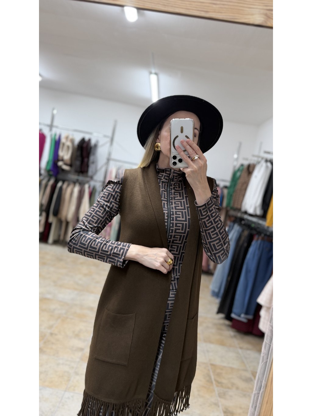 - praktické vrecká dodávajú každodenný komfort a spodný okraj zdobia strapčeky, ktoré z vesty robia moderný a zaujímavý kúsok