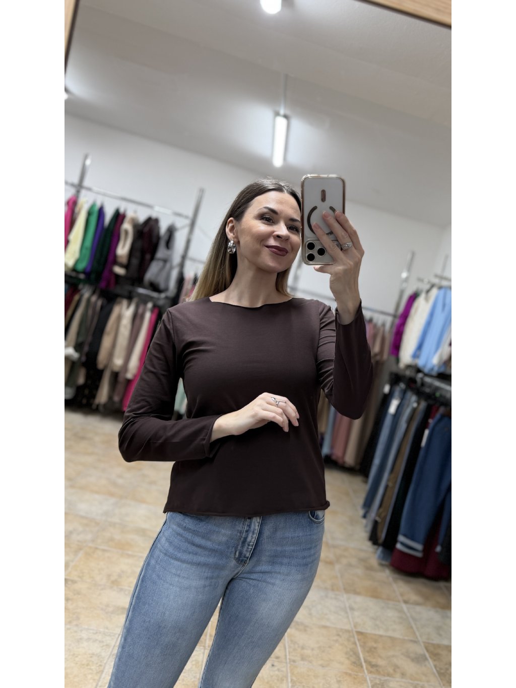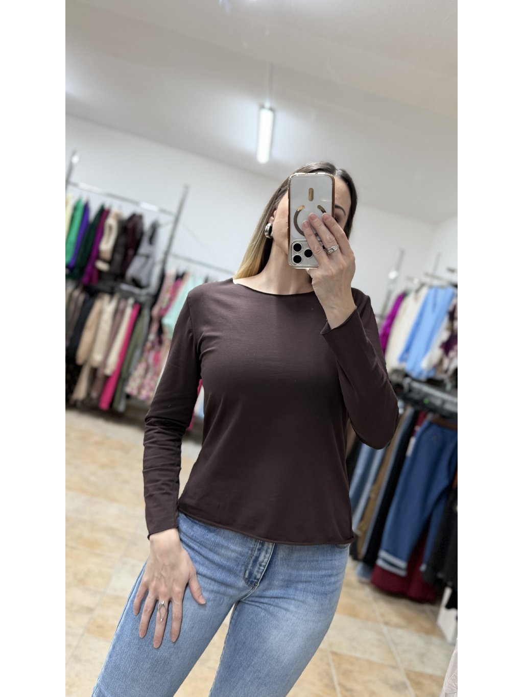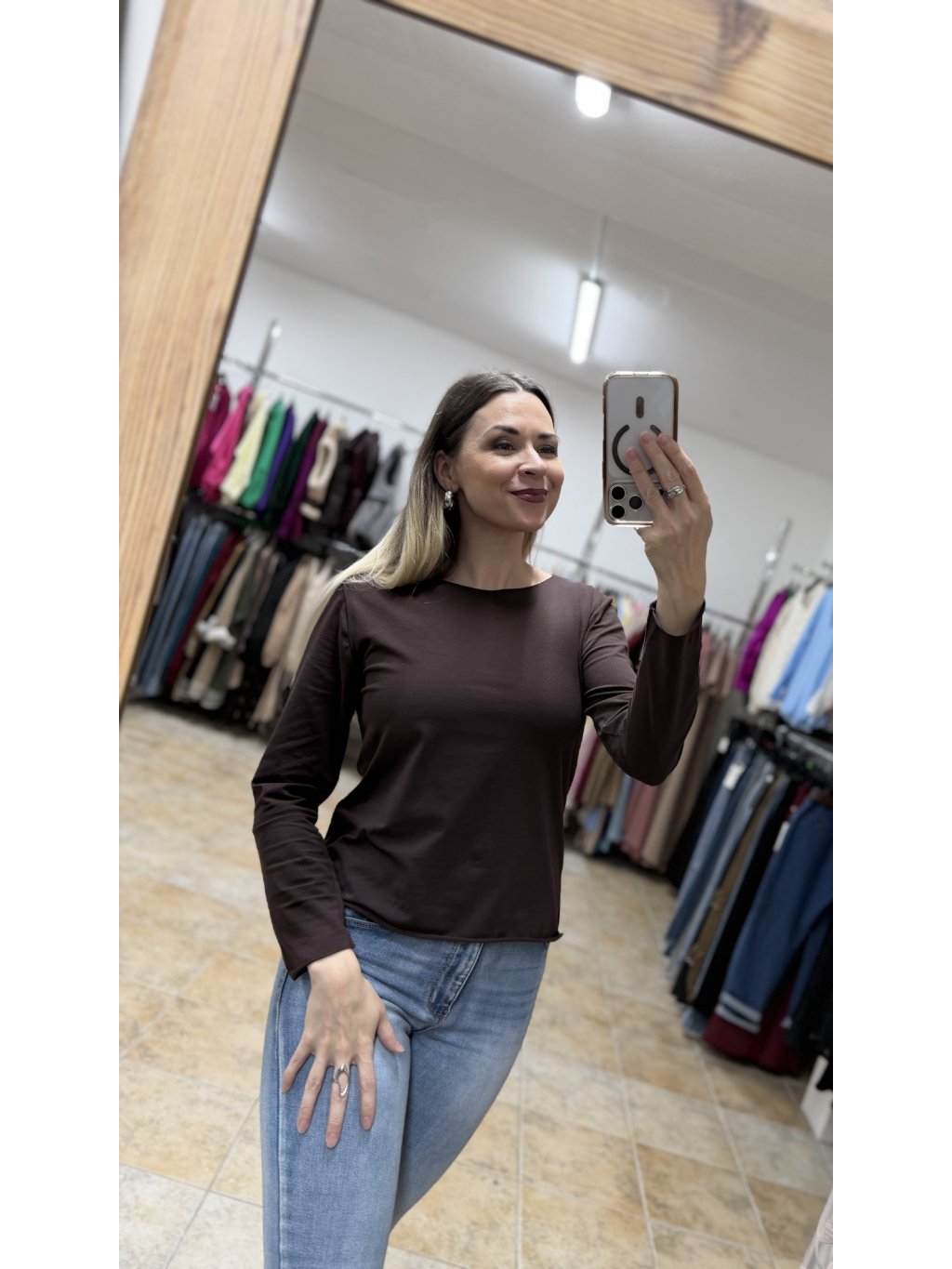 - hnedé bavlnené tričko s dlhým rukávom je ideálne na každodenné nosenie, do práce aj na voľný čas