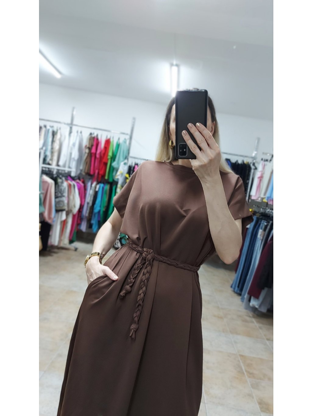 Hnedé šaty s vreckami Canelle