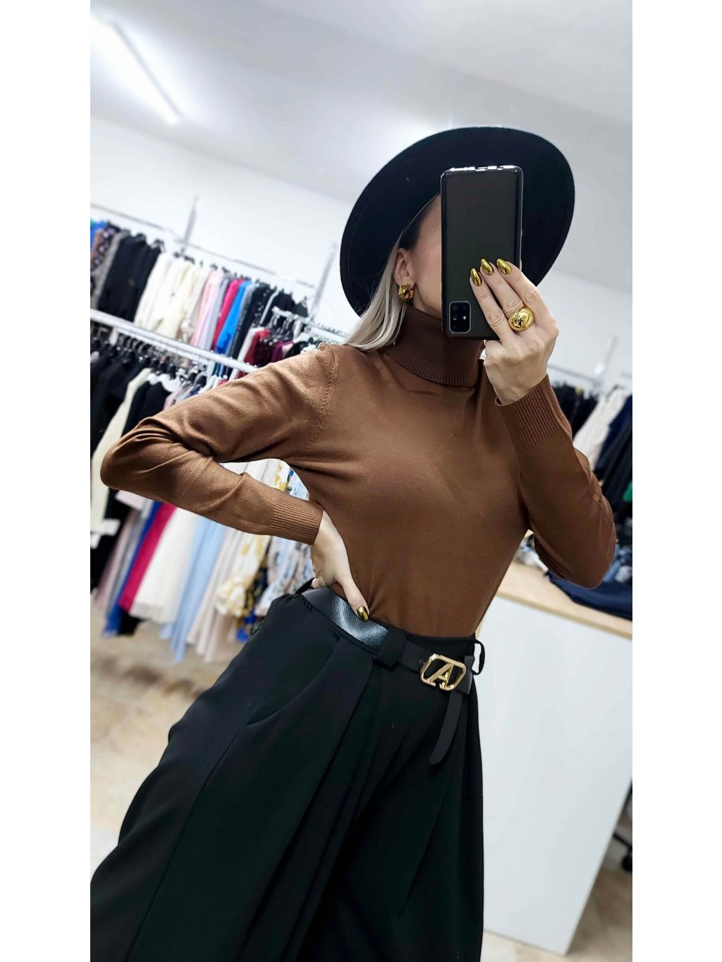 - tento hnedý rolák sa skvelo hodí k béžovým, krémovým, čiernym aj olivovým nohaviciam