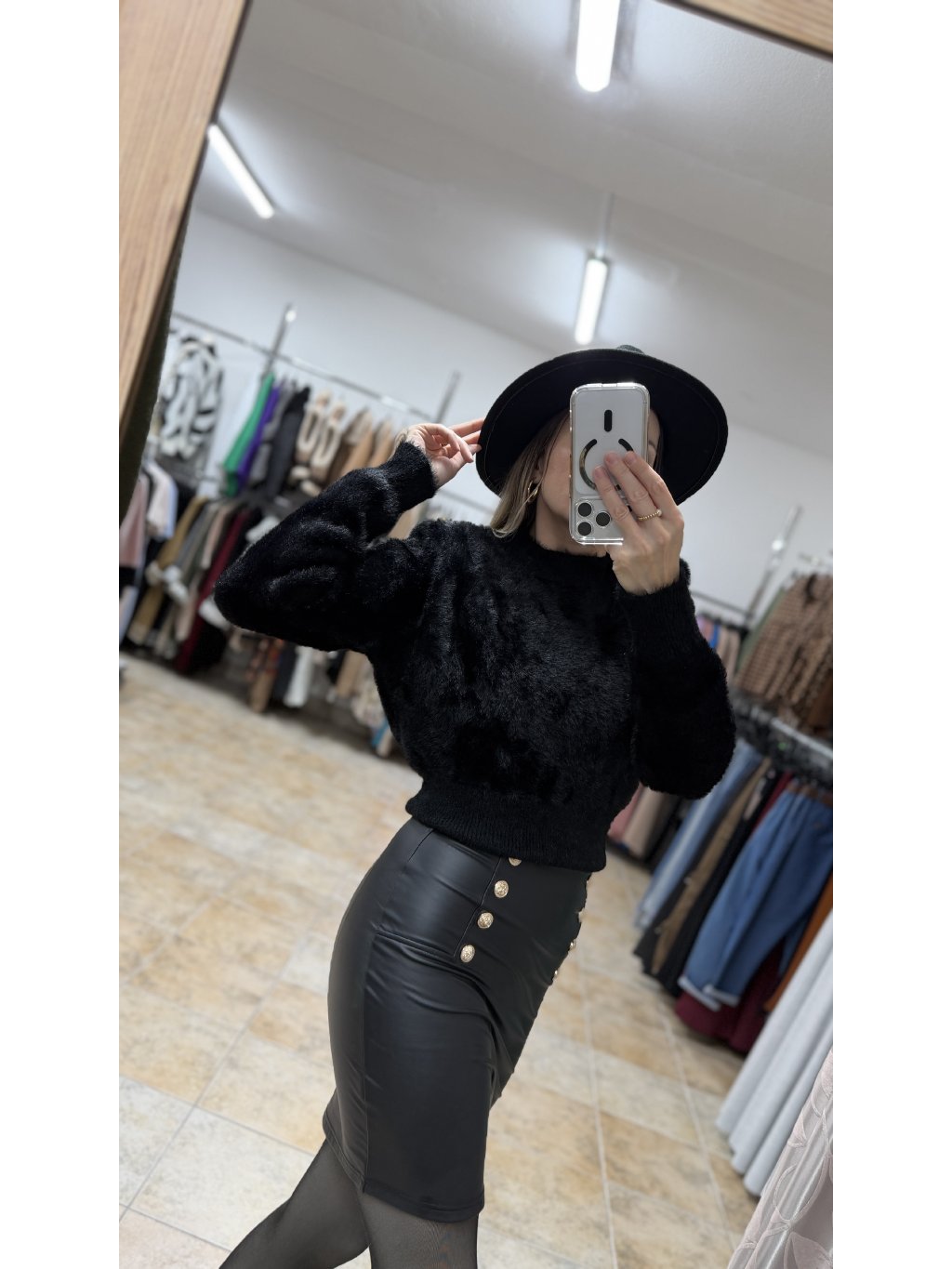 - huňatý sveter skombinuj s koženkovými nohavicami, klasickými džínsami, elegantnou sukňou či midi šatami