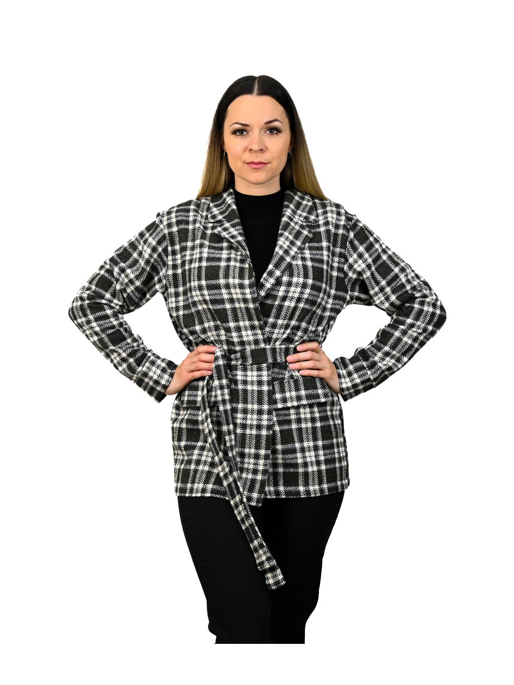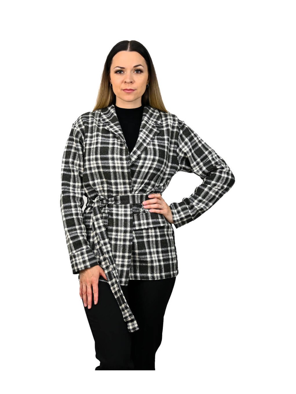 Karované sako s opaskom