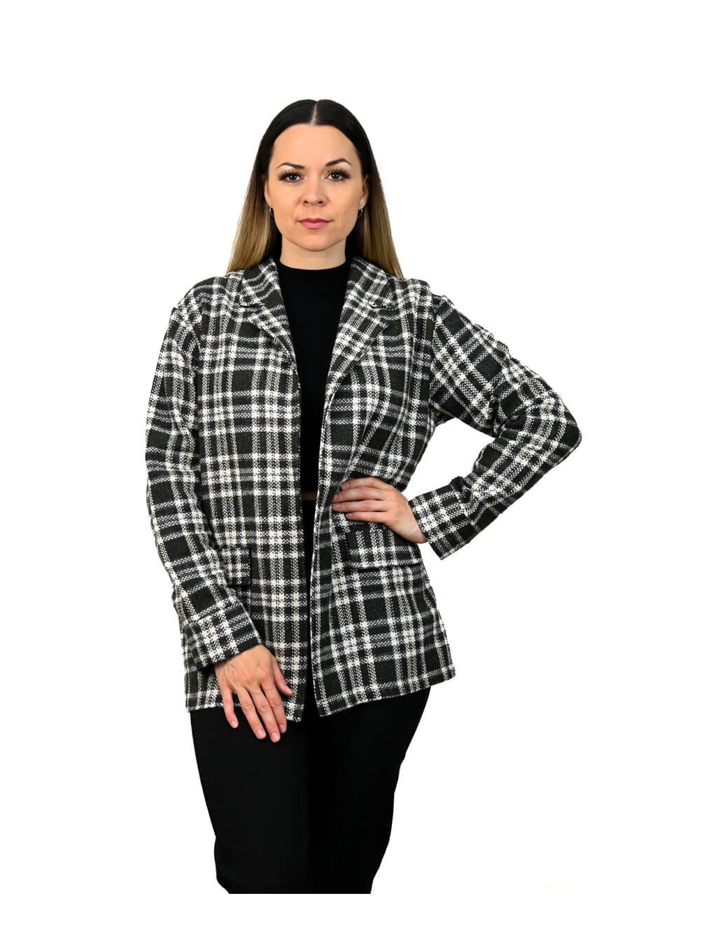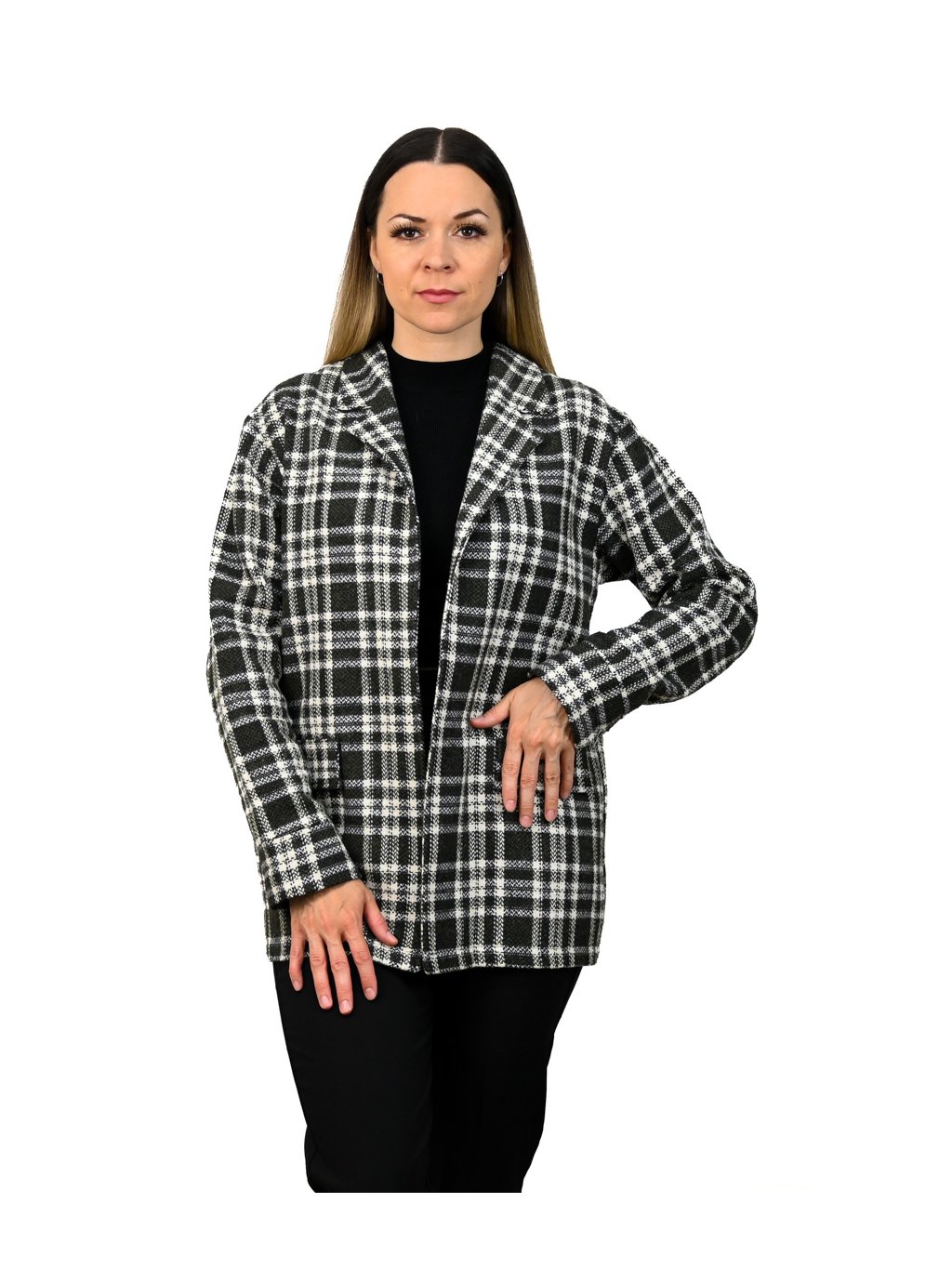 - sako má voľný, ľahký oversize strih bez zapínania, vďaka čomu pôsobí ležérne, no stále elegantne