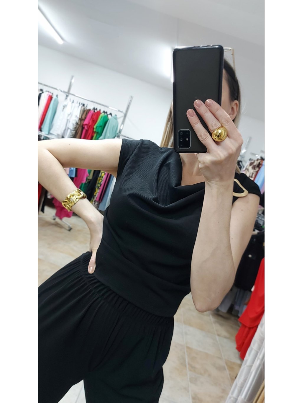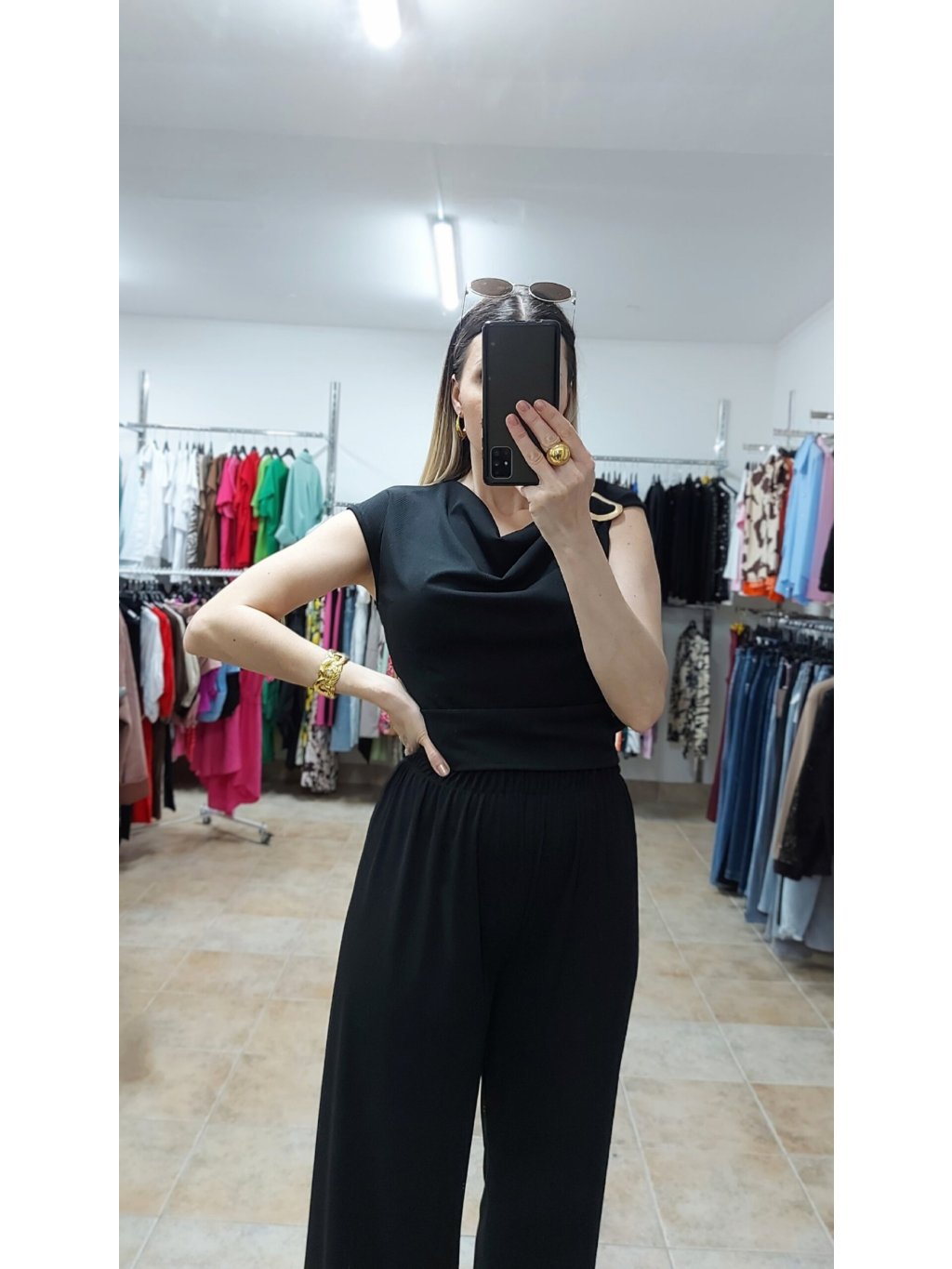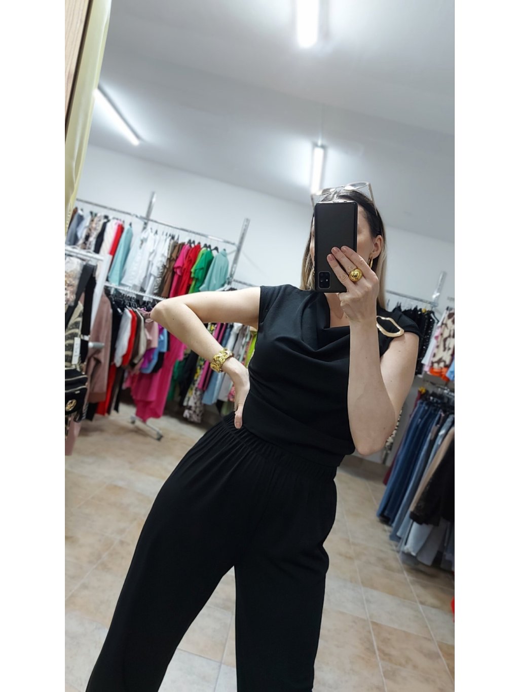 - hoci je top kratší, nie je „crop“ – krásne zakryje pás a vytvára dokonalý súlad s nohavicami