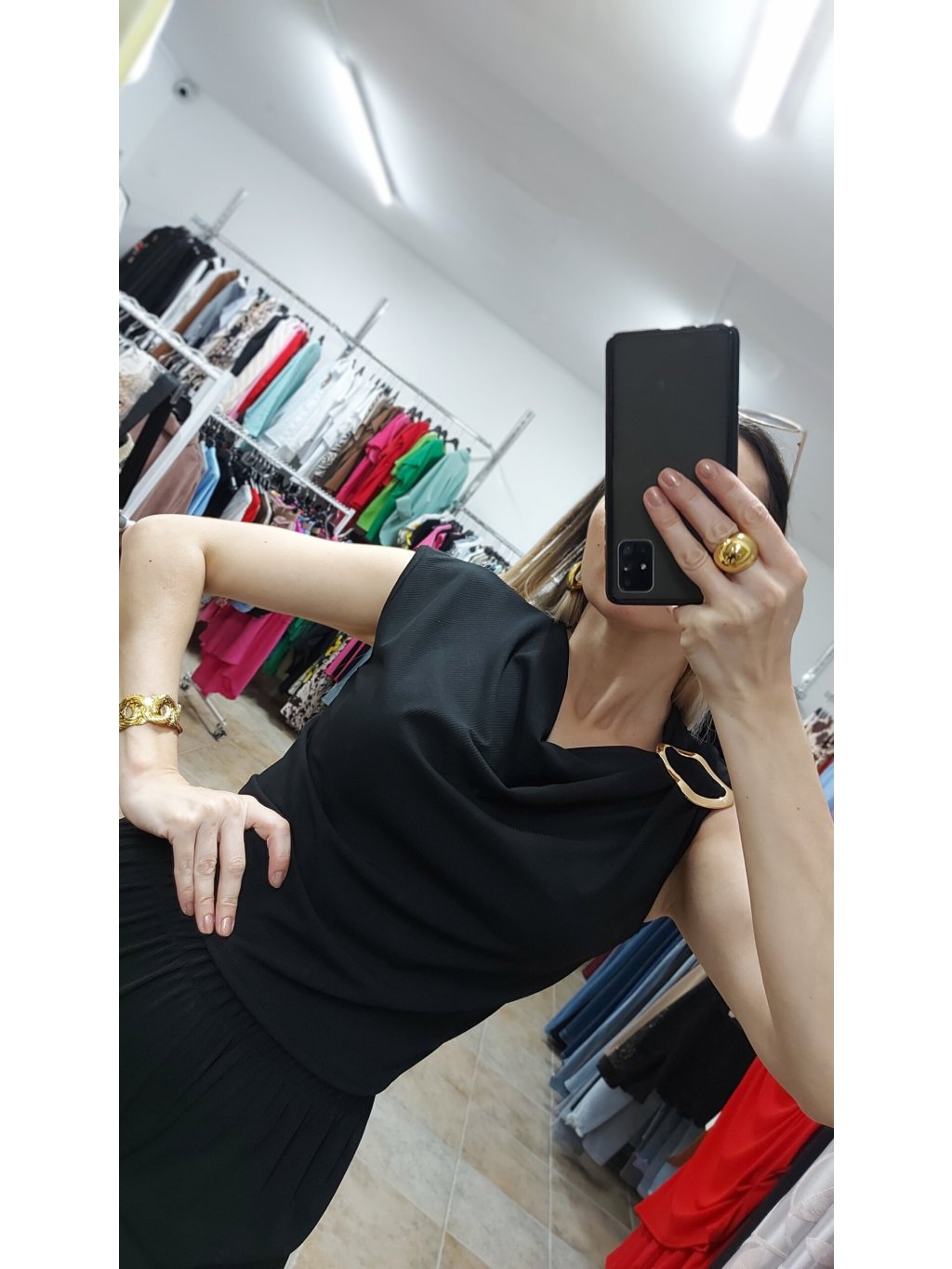 - na ľavej strane ho zdobí výrazná zlatá spona, ktorá pôsobí luxusne a dodáva outfitu výnimočný šmrnc