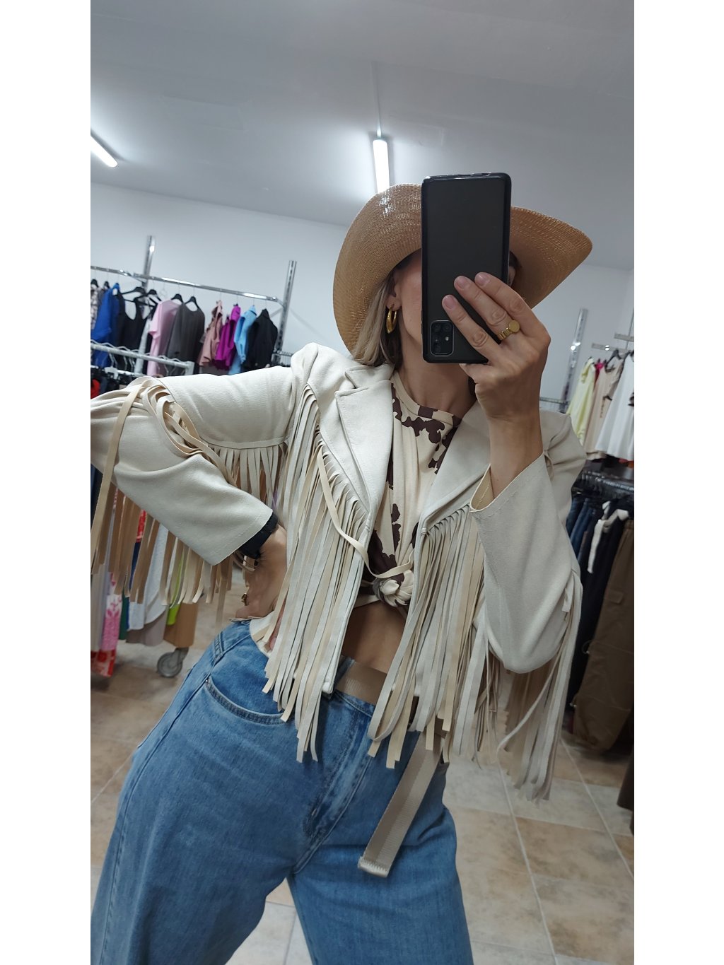 - krémová kovbojská bunda Shania je jemný, no zároveň výrazný kúsok, ktorý zaujme na prvý pohľad